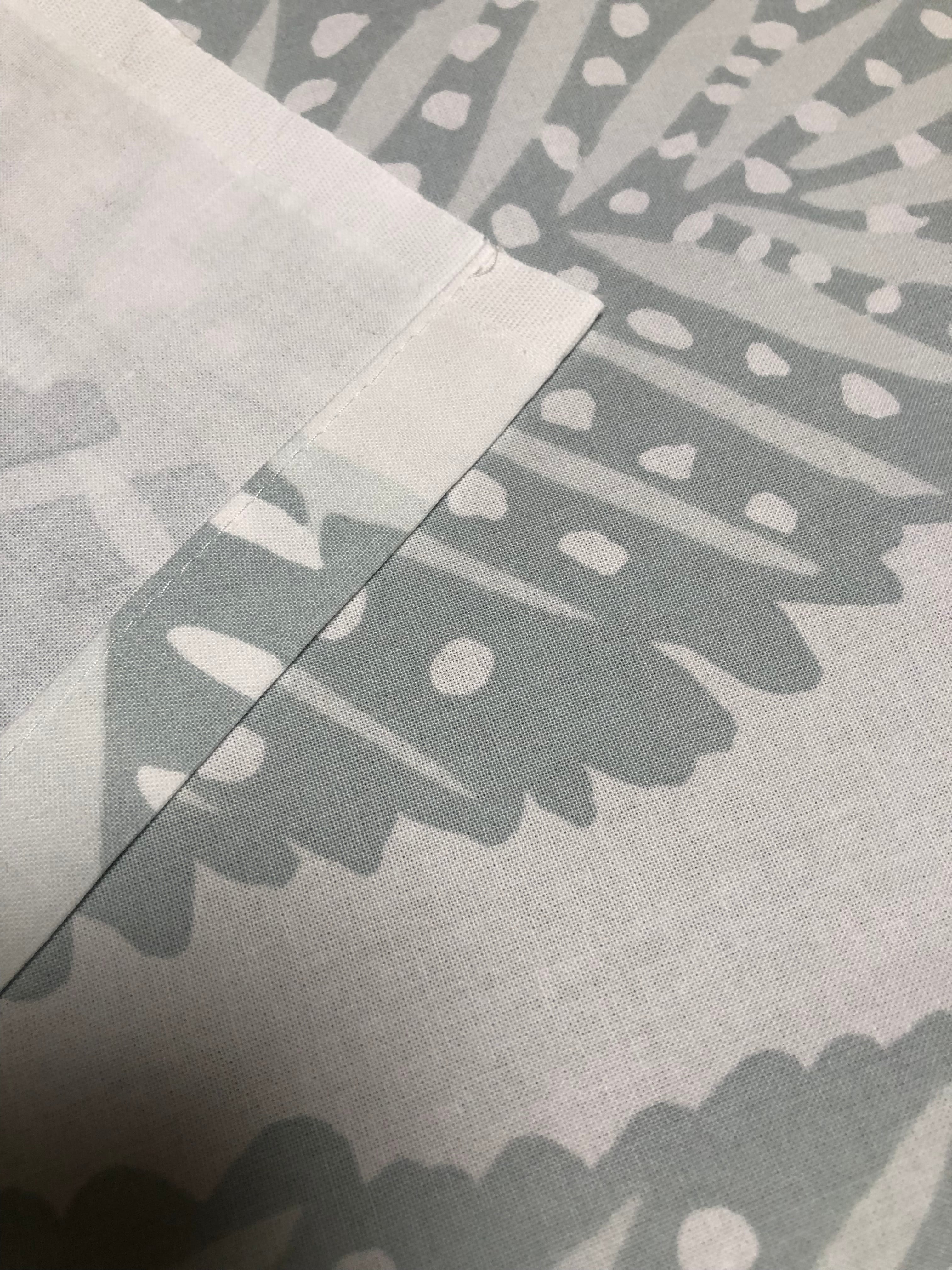 生地の上下部は2cm程の幅で縫製されています。手作りですが丁寧に縫われており、このまま使用が可能だと思います。
