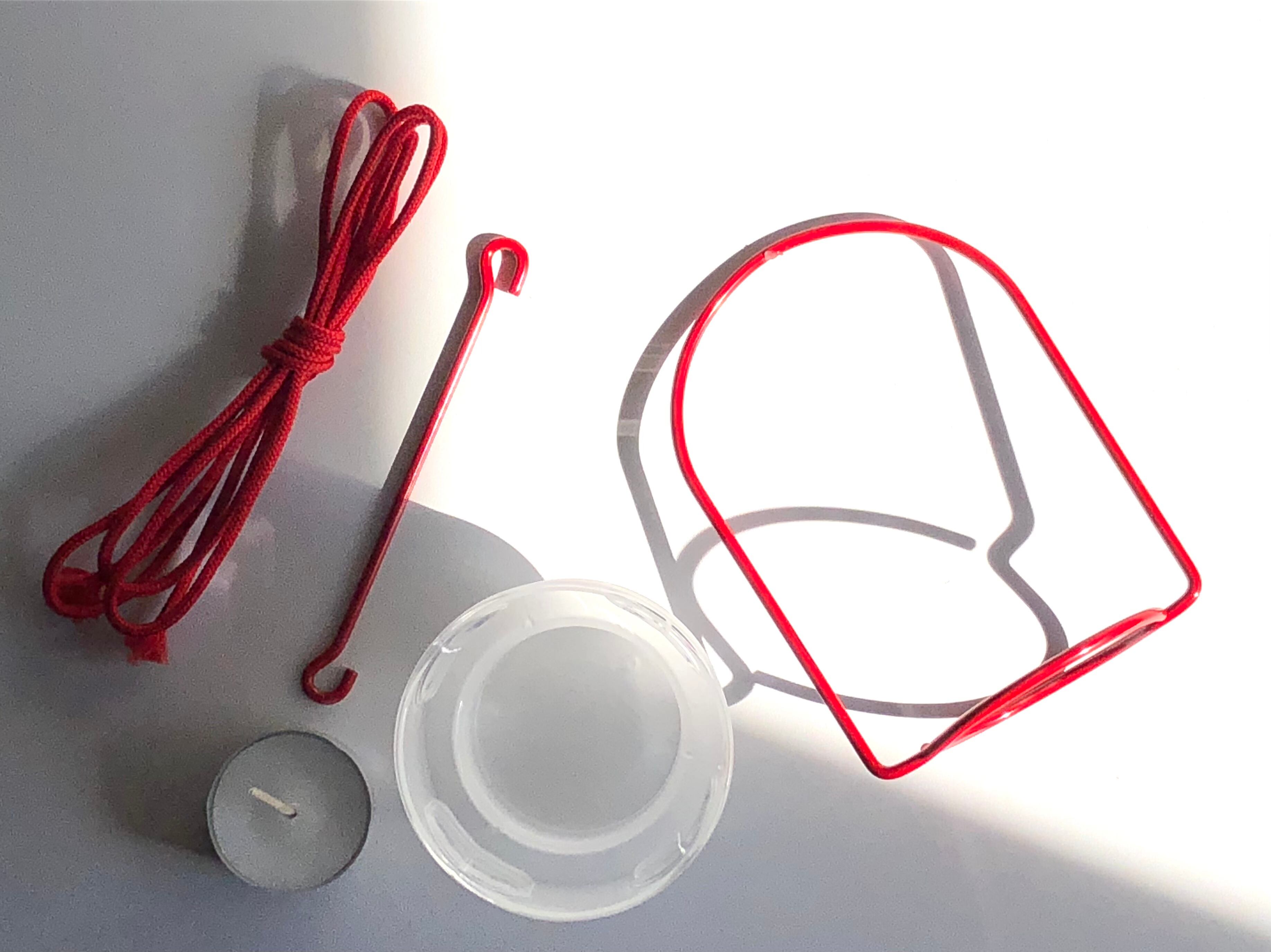 このアイテムにはキャンドルホルダーをハンギングするための赤い金属製フレームと、そのためのフック、更に赤い紐が付属しており、飾るだけでもクリスマスの雰囲気が楽しめます。