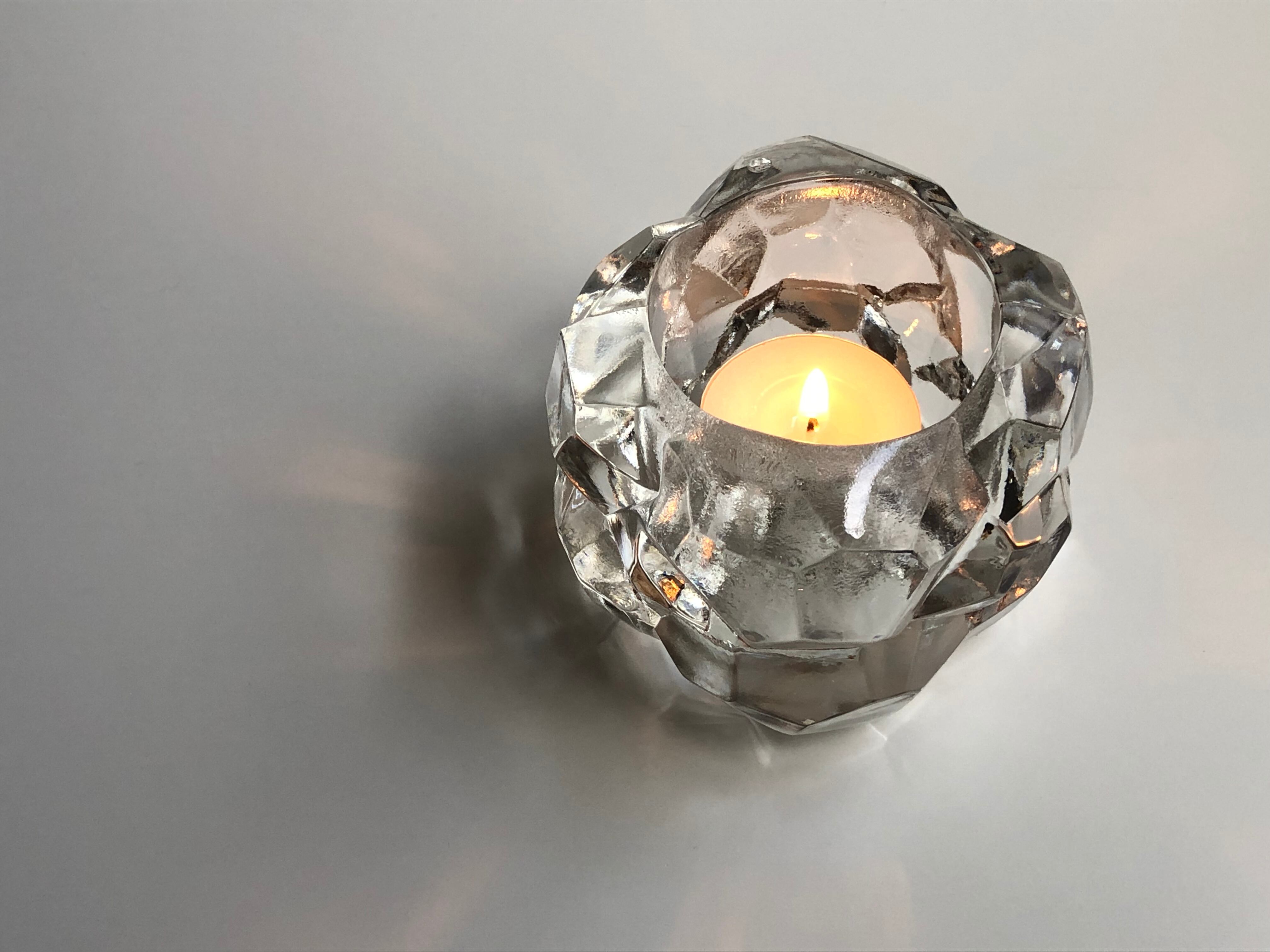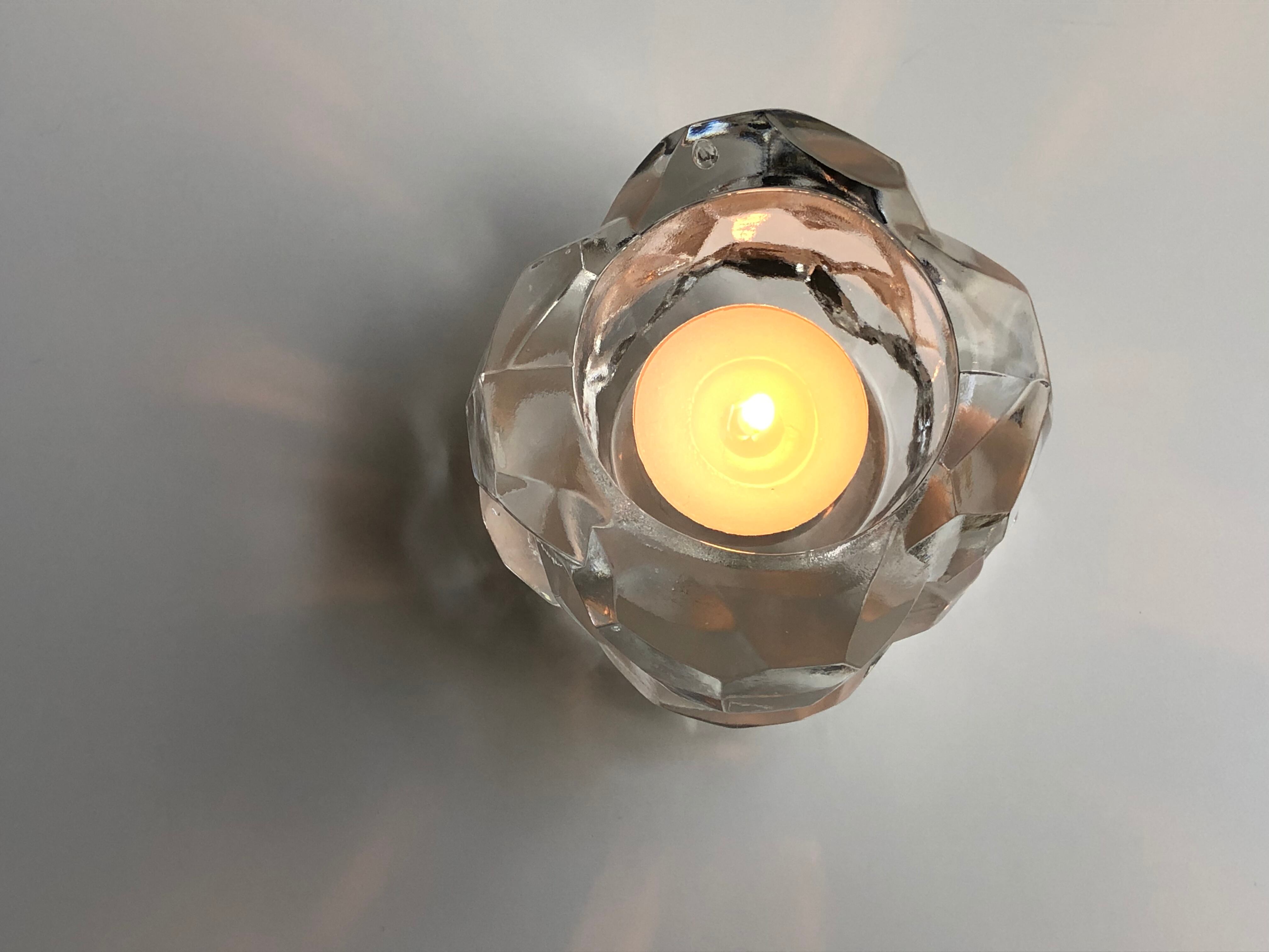 とてもぶ厚いガラスで出来ており、大きさも相まってキャンドルホルダーそのものがまるでオブジェのように存在感を放ちます。