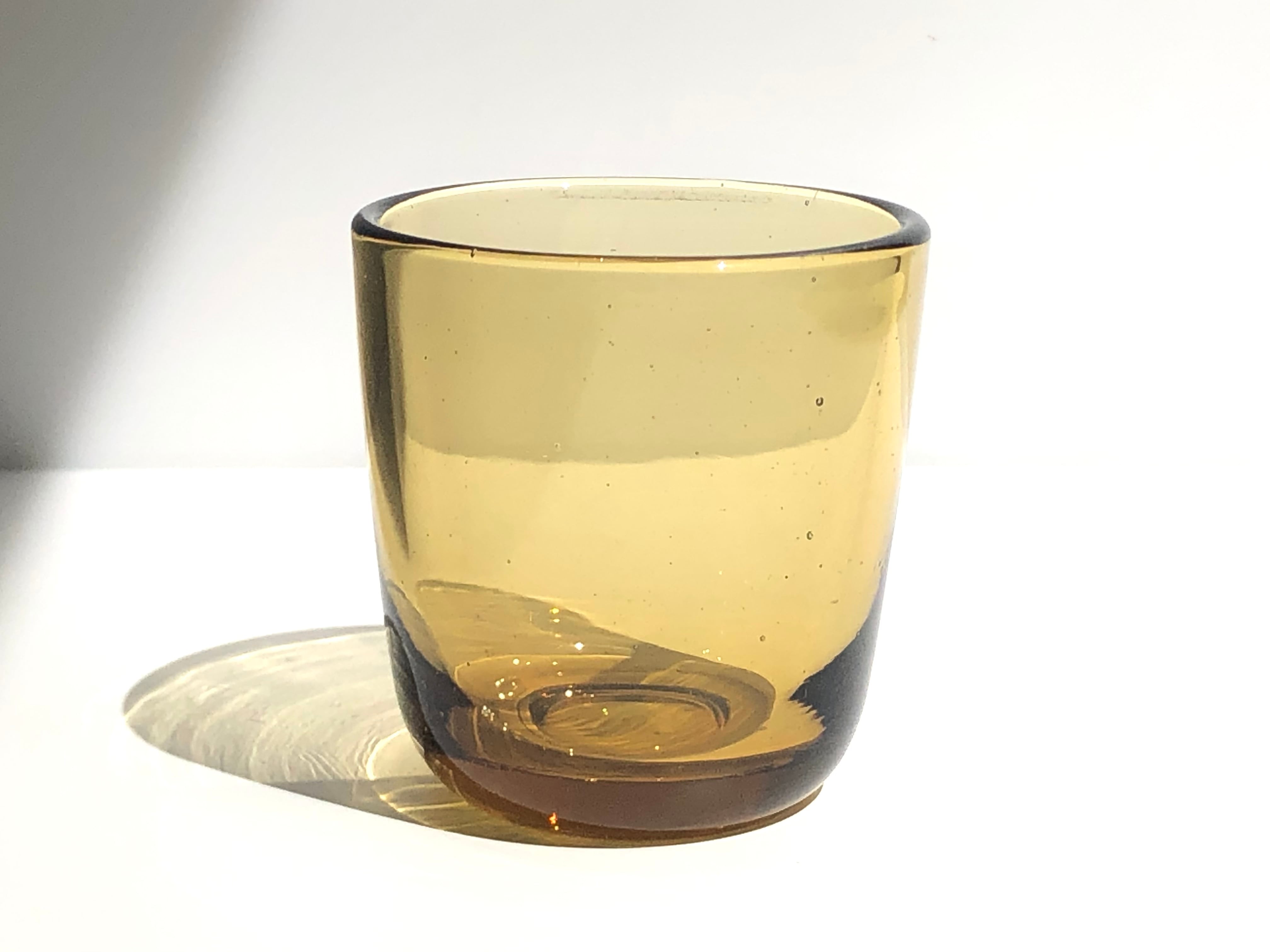 かなり多くのカラーバリエーションが製造されたシリーズで、その中からアンバー、スモーク、モスグリーン、墨紺、ライラックの5色のショットグラスが入荷しました。