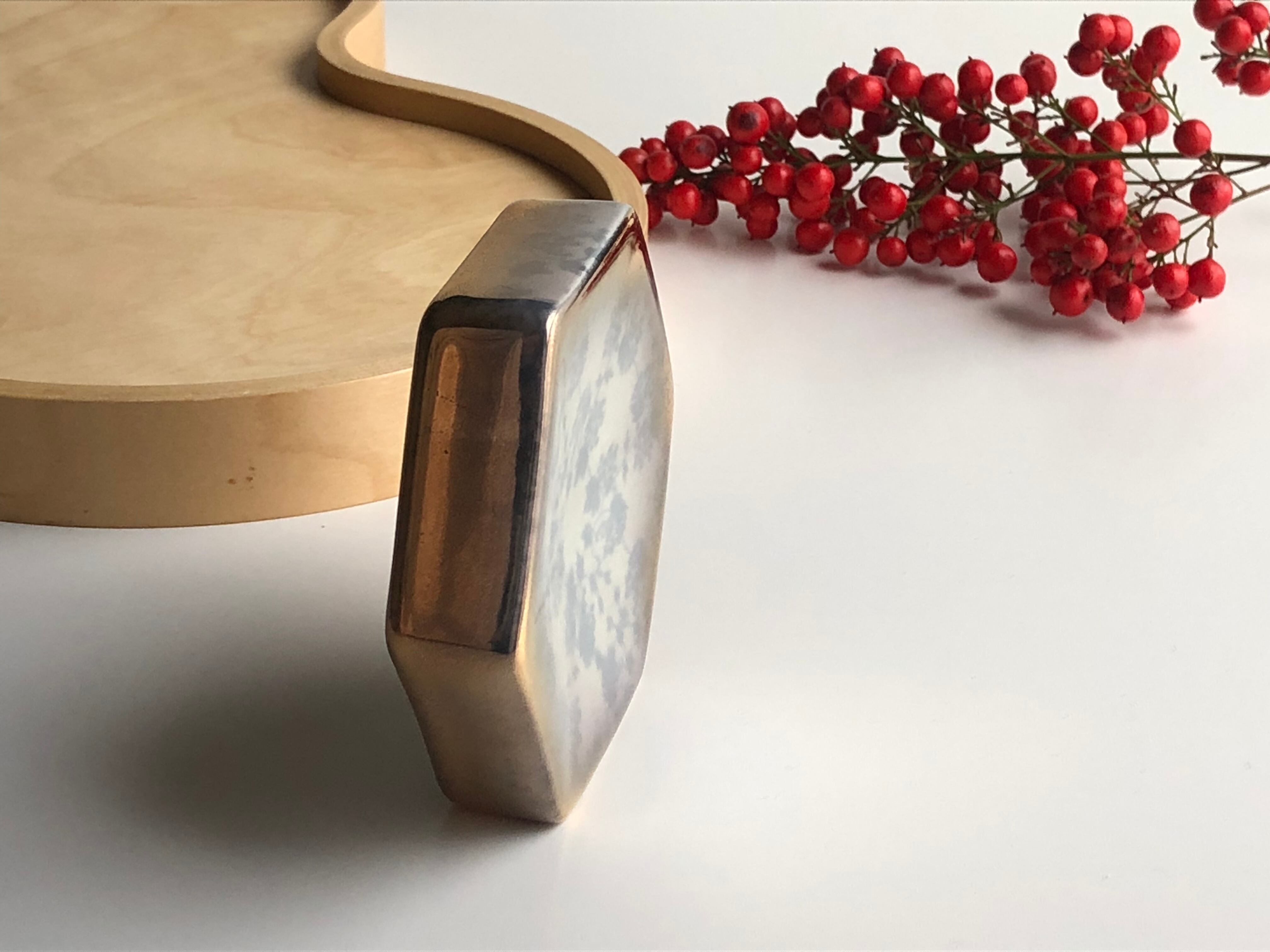 ヘキサゴンディッシュは六角形の立体構造で、中央に向かって傾斜したデザインなのでちょっとした小物を置くこともできますし、このまま立てて飾ることもできます。