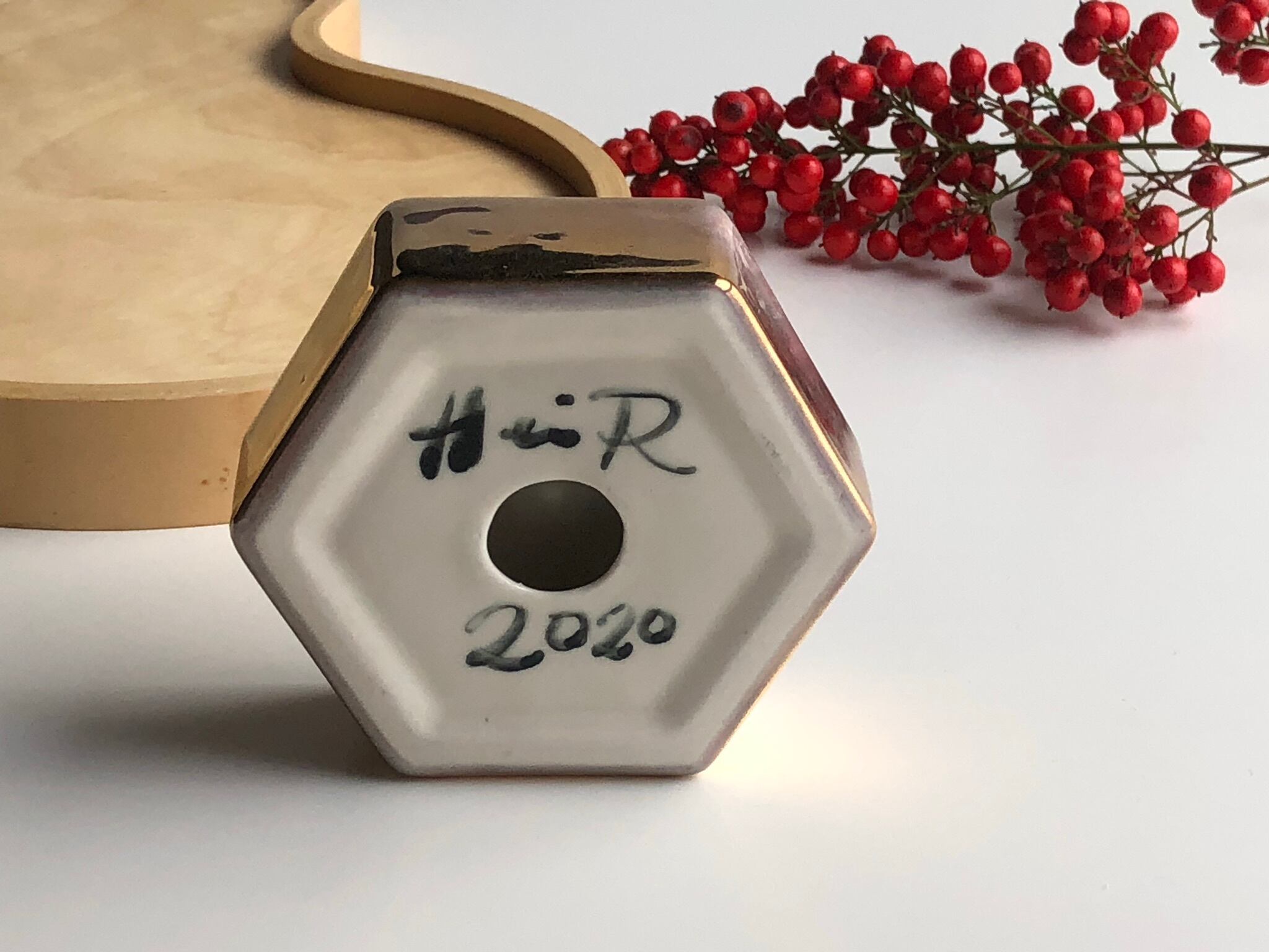 【ご売約品】Heini Riitahuhta/ヘキサゴンディッシュ(幾何学・ゴールド)M・ヘイニリータフフタ アラビア Arabia Art Department