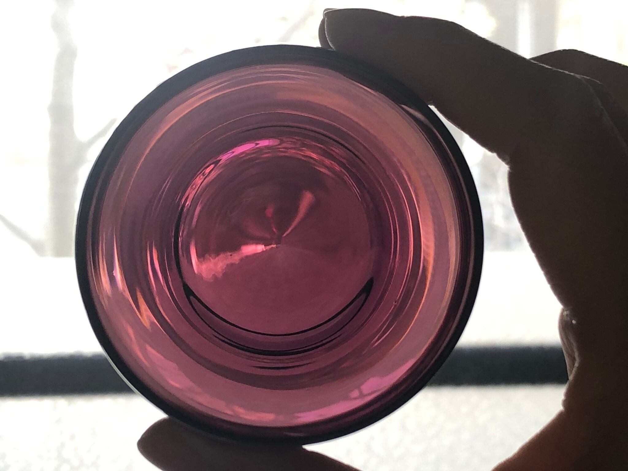 この2007のパープルは1963年から生産されていたもので、マウスブローによって製造された繊細なグラスは中央が美しい弧を描きながら膨らんだ形状をしており、ガラスに柔らかな印象を与えるデザインが特徴です。