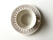 ソーサー、カップ共に表面に極薄い擦れが僅かに見られますが、光に当ててかなりよく見なければわからない程度です。また、製造段階からのものと思われる微細なプリントロスがありますが、目立つ傷や汚れもなく使用感も殆ど感じない大変きれいなコンディションです。