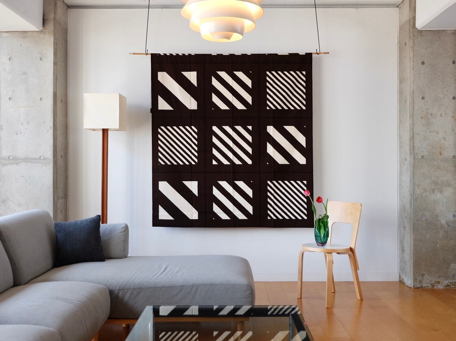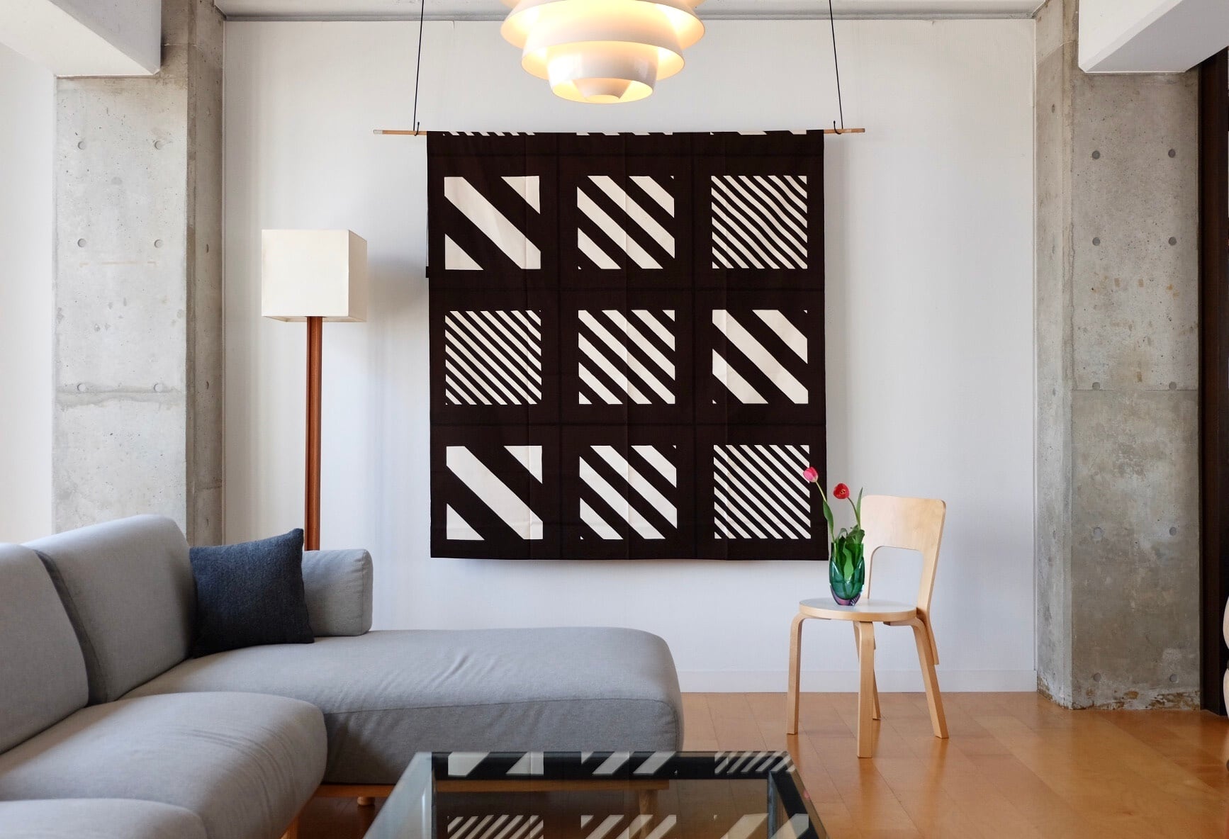 上下が縫製されているので、このままでもテーブルクロスや、ベッドカバー、カーテンなどに使用できると思います。タペストリーや大きなファブリックパネルにされても素敵だと思います。