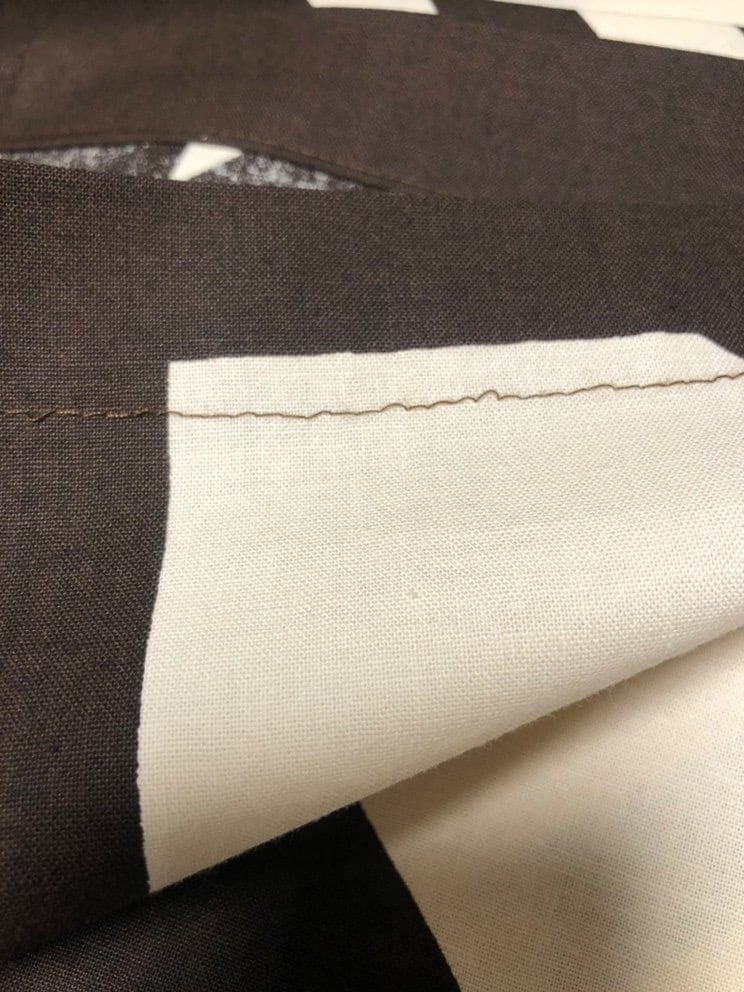 家庭で使用するために縫製されたもので、ところどころ縫い目に歪みや糸調子の悪そうな箇所が見られますが、おおむねきれいに縫製されておりこのまま使用できそうです。