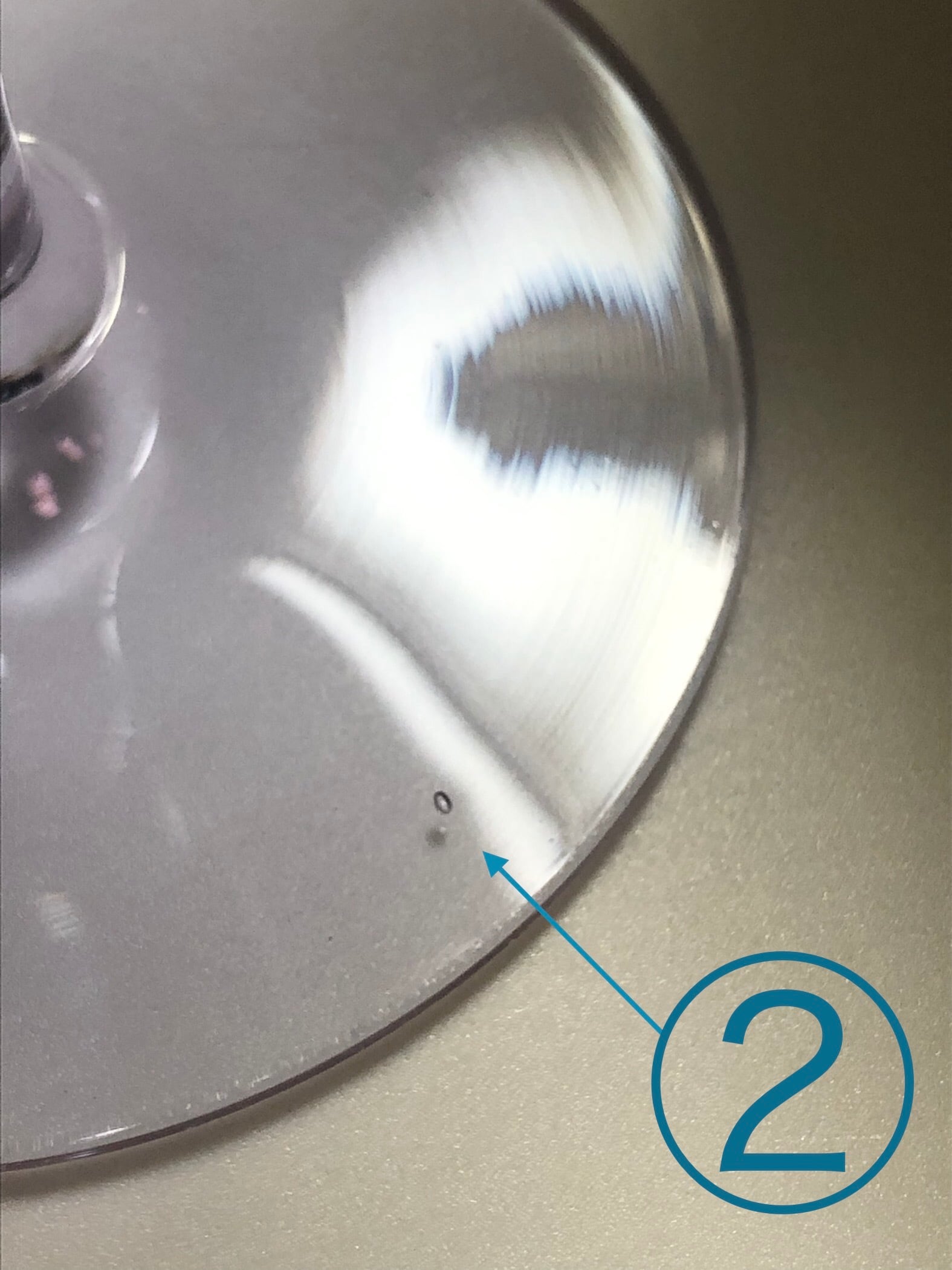 フットに小さな気泡がみられます。またフットの縁に製造時に生じたざらつきが見られます。