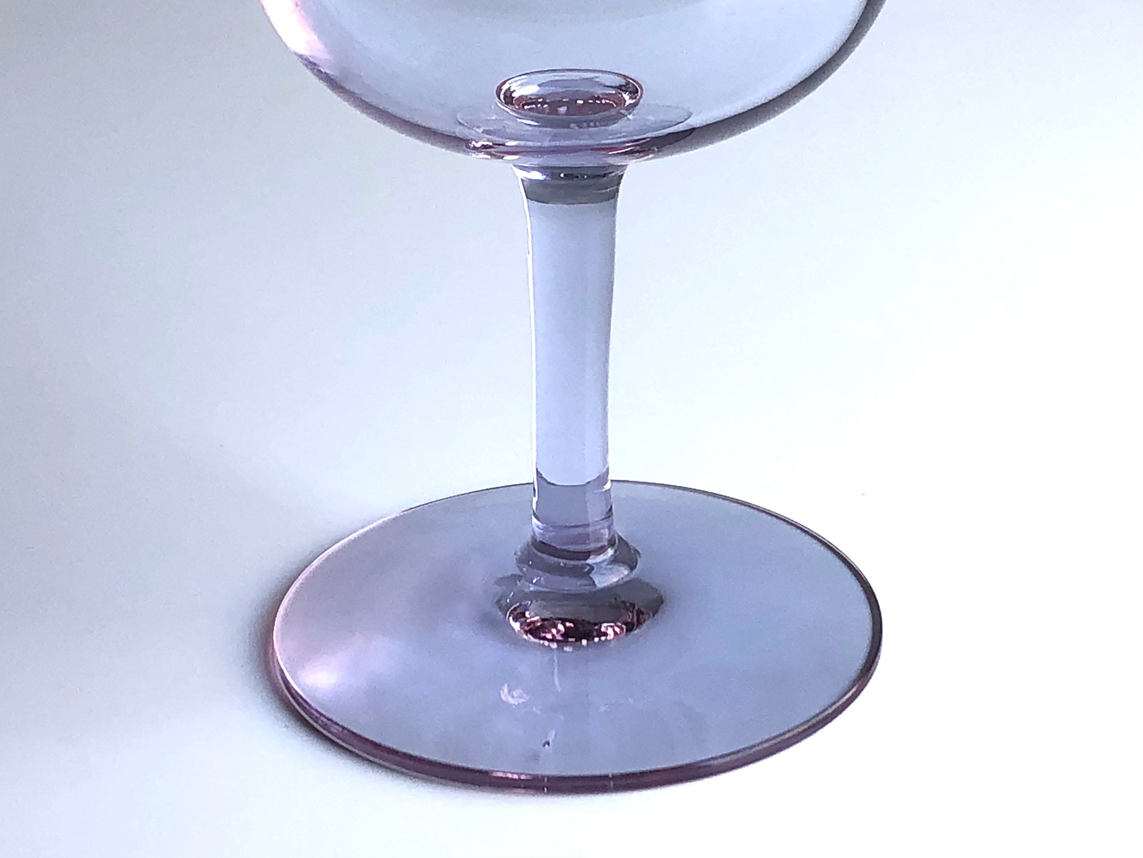 このキャンドルホルダーは、通常時は淡いピンクまたは薄紫に見えますが、蛍光灯の下で見るとグリーン寄りの不思議な色合いに変化します。