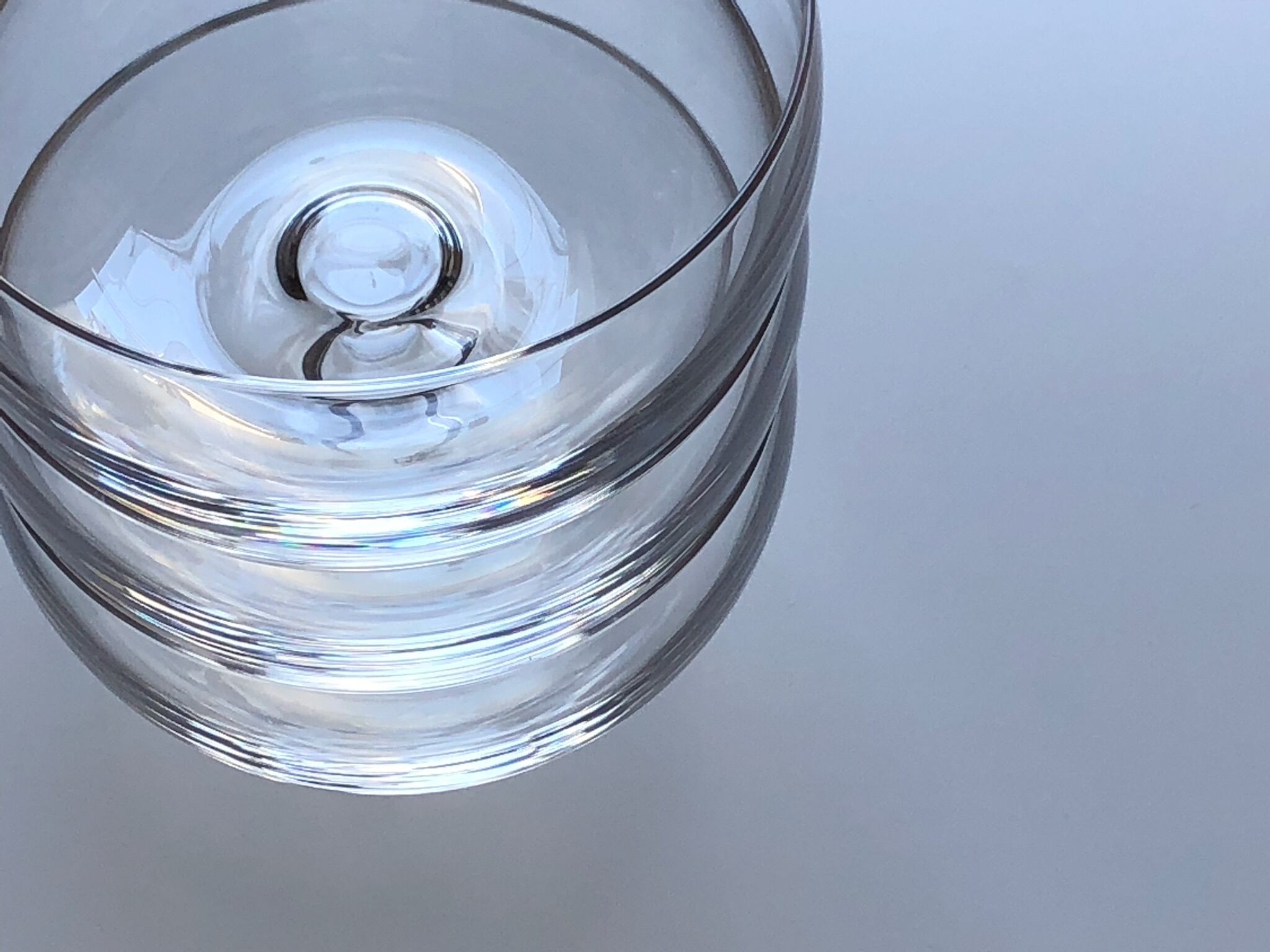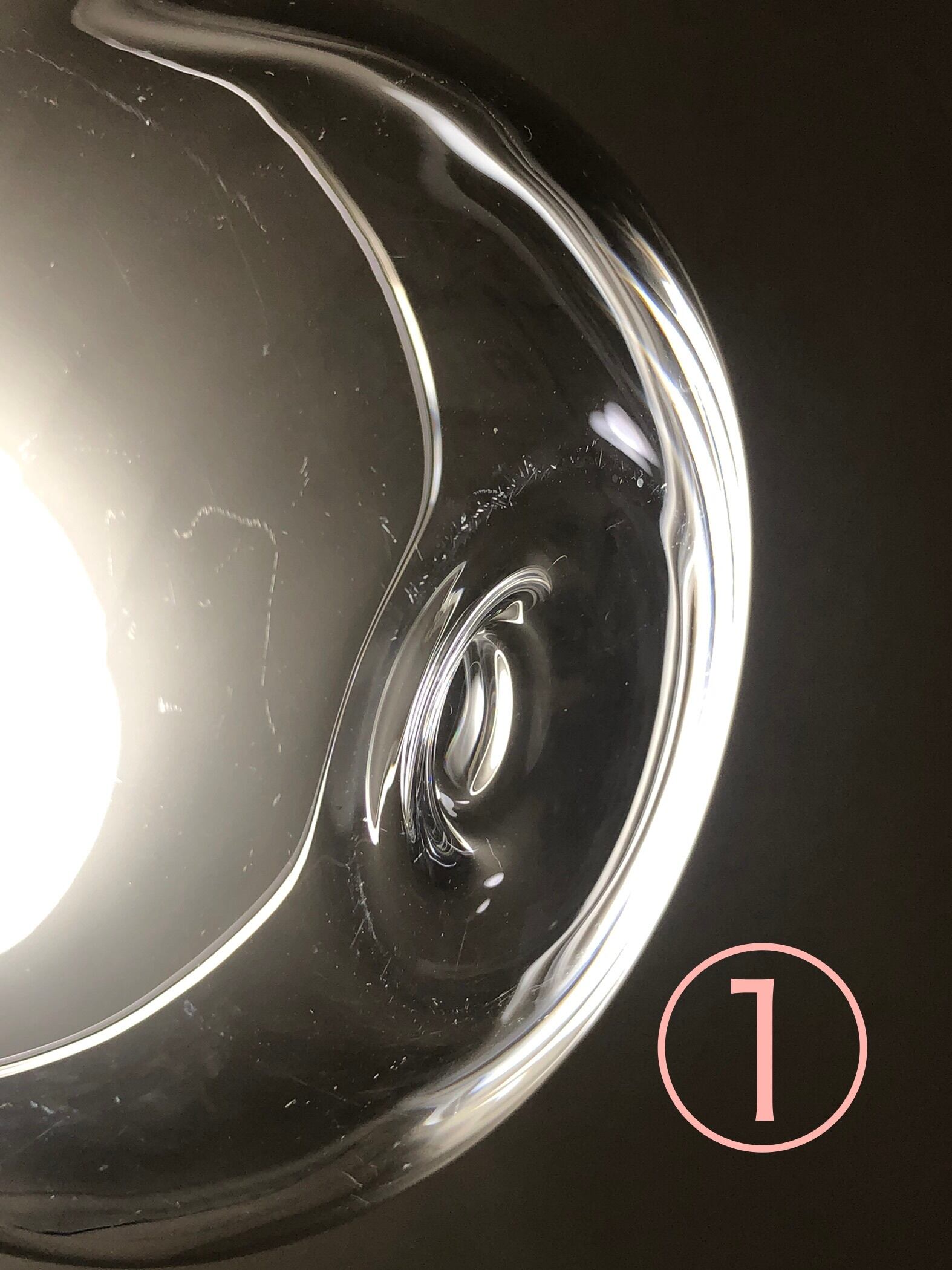 その他、製造段階のものですが、グラスの口をカットした後に焼いて角を丸める処理を施していますので、口付近のなだらかな揺らぎや、処理による白っぽい痕が見られます(光に透かしてよく見なければわからないようなものです)。また微細な気泡がみられる物もございます。いずれもこのアイテムの製造方法による特性としてご理解ください。
