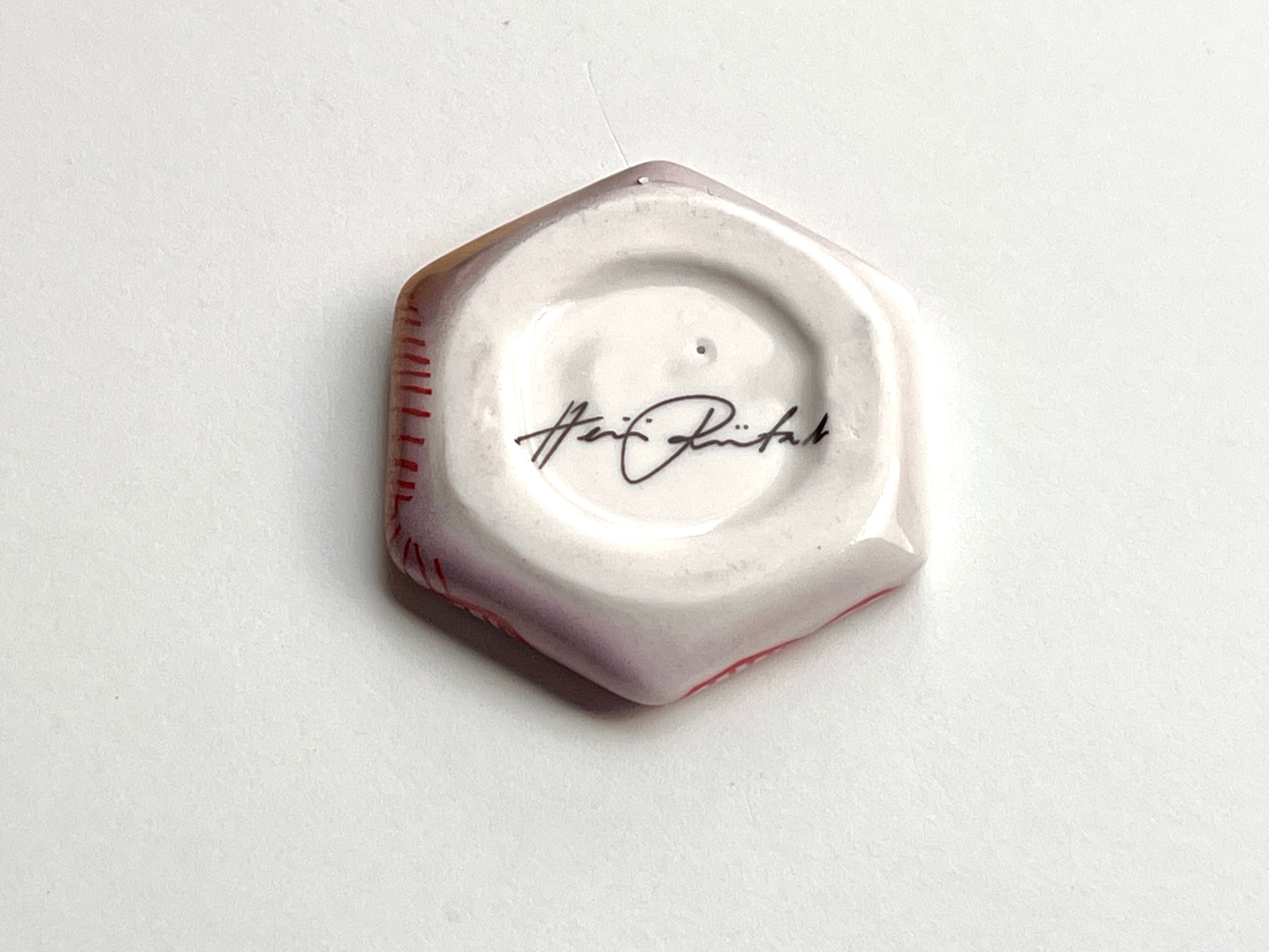 ミニヘキサゴンは、六角形の陶器に一点一点ヘイニさんが自ら彩色を施し手仕事で仕上げた小さなアートピースです。