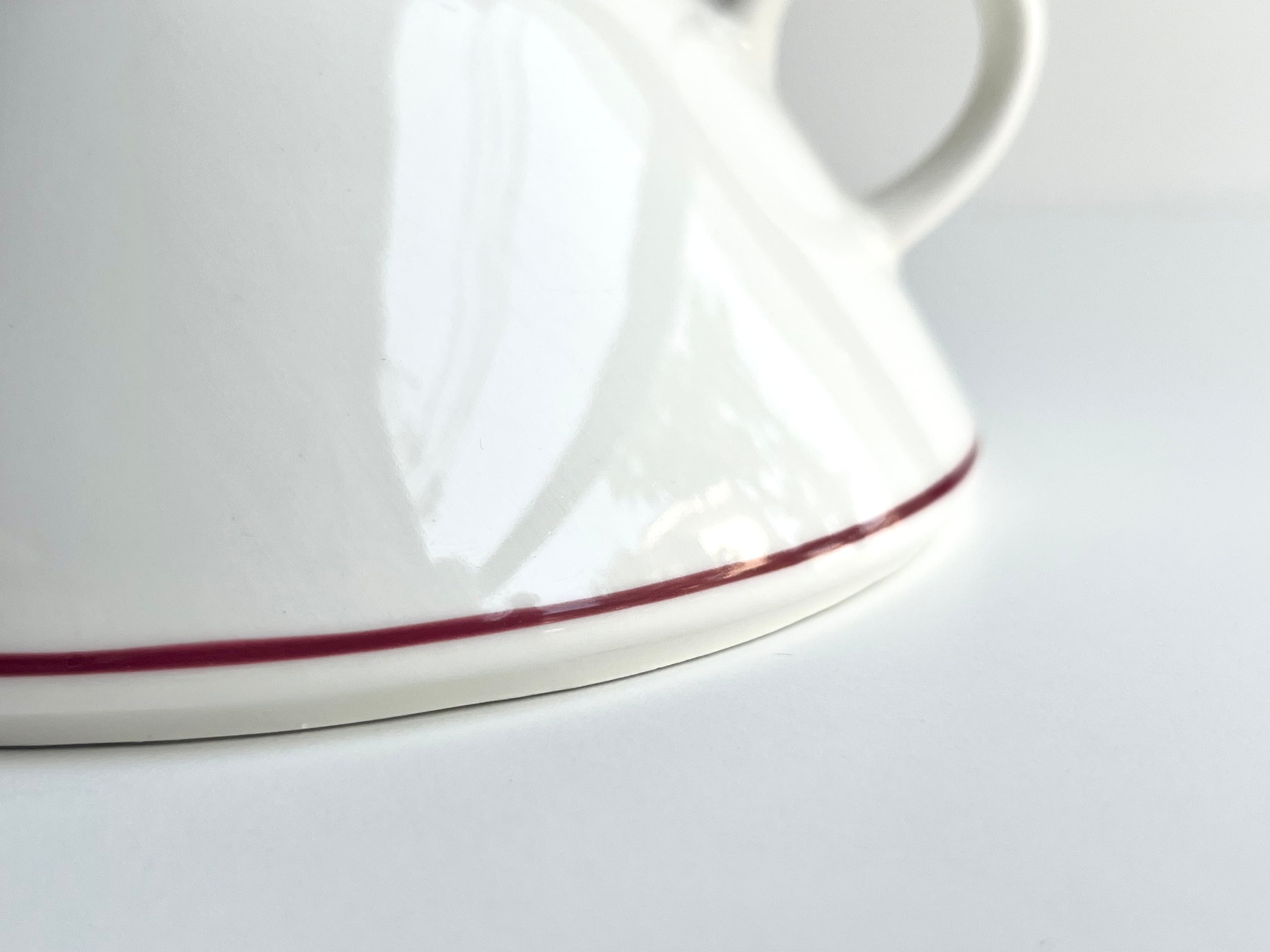 特徴的な三角錐の形状が面白く、アイボリーに青みのある落ち着いたチェリーレッドのアクセントはとても上品な雰囲気があります。