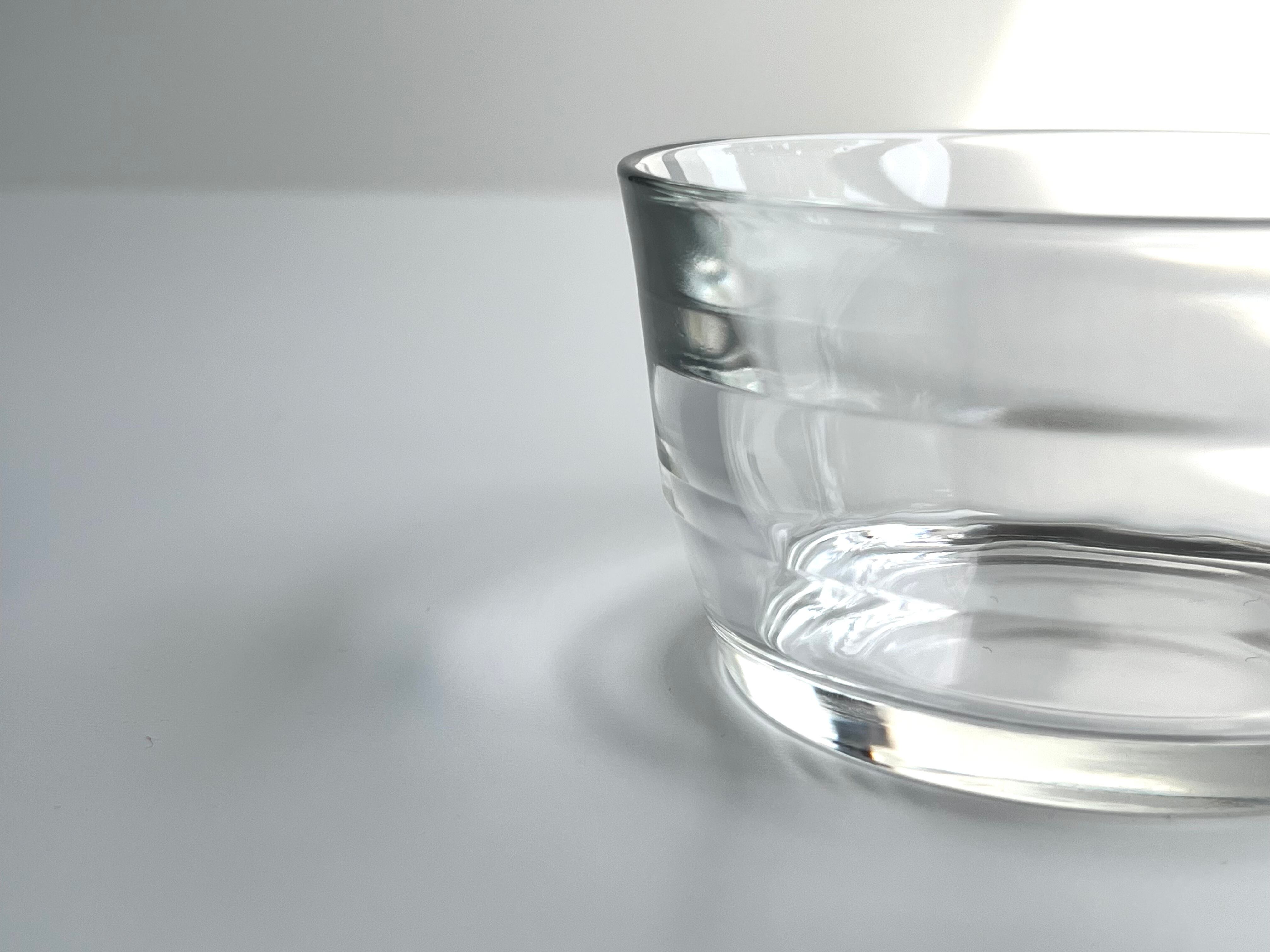 厚みのあるガラスには、上部三分の一には内側に、下部三分の一には外側にと各々テーパのかかったデザインが施されており、その名の通り光の屈折を楽しめます。
