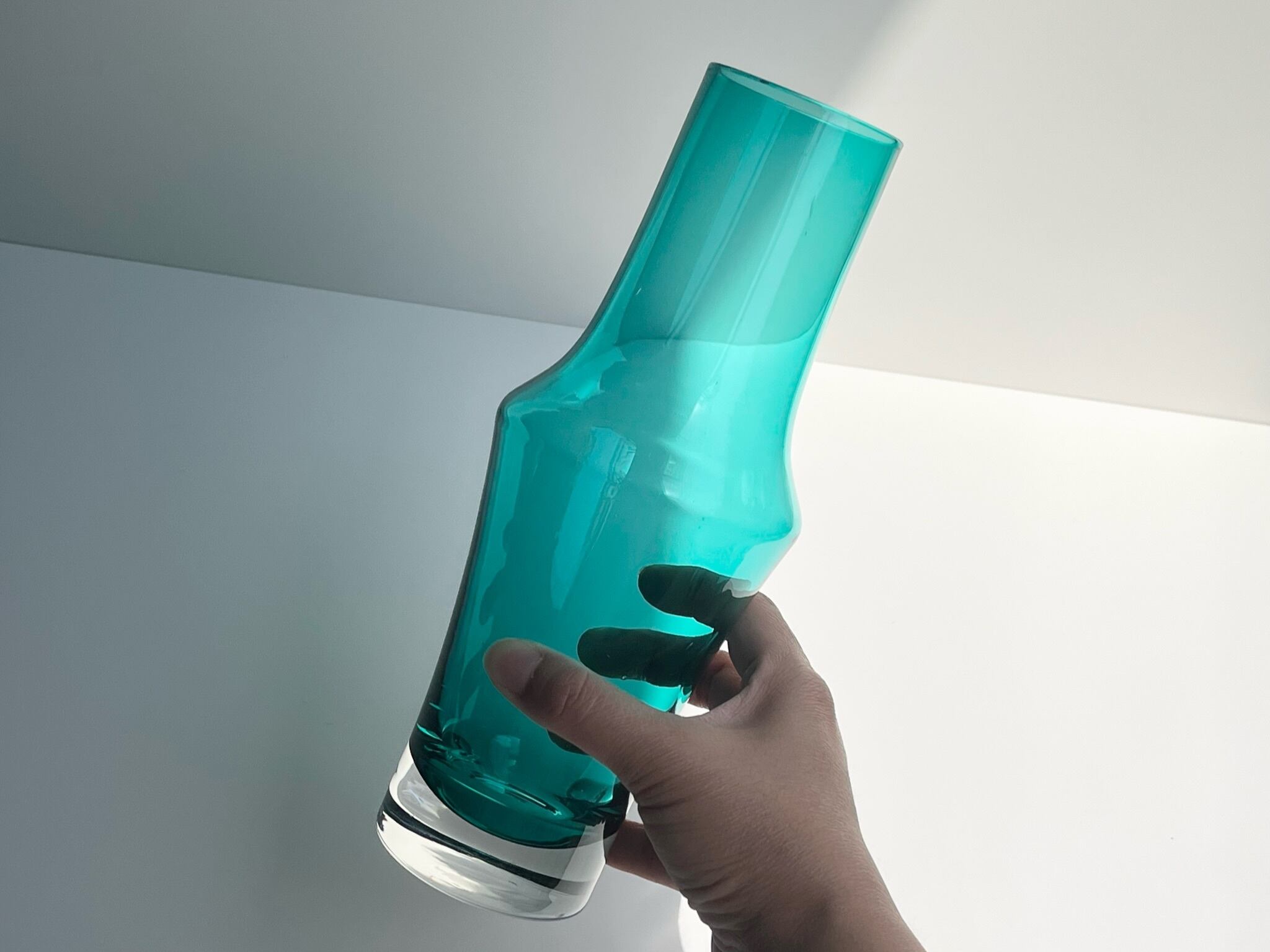 【Riihimaen lasi】 ヴィンテージフラワーベース 1376(ターコイズ)・リーヒマエンラシ