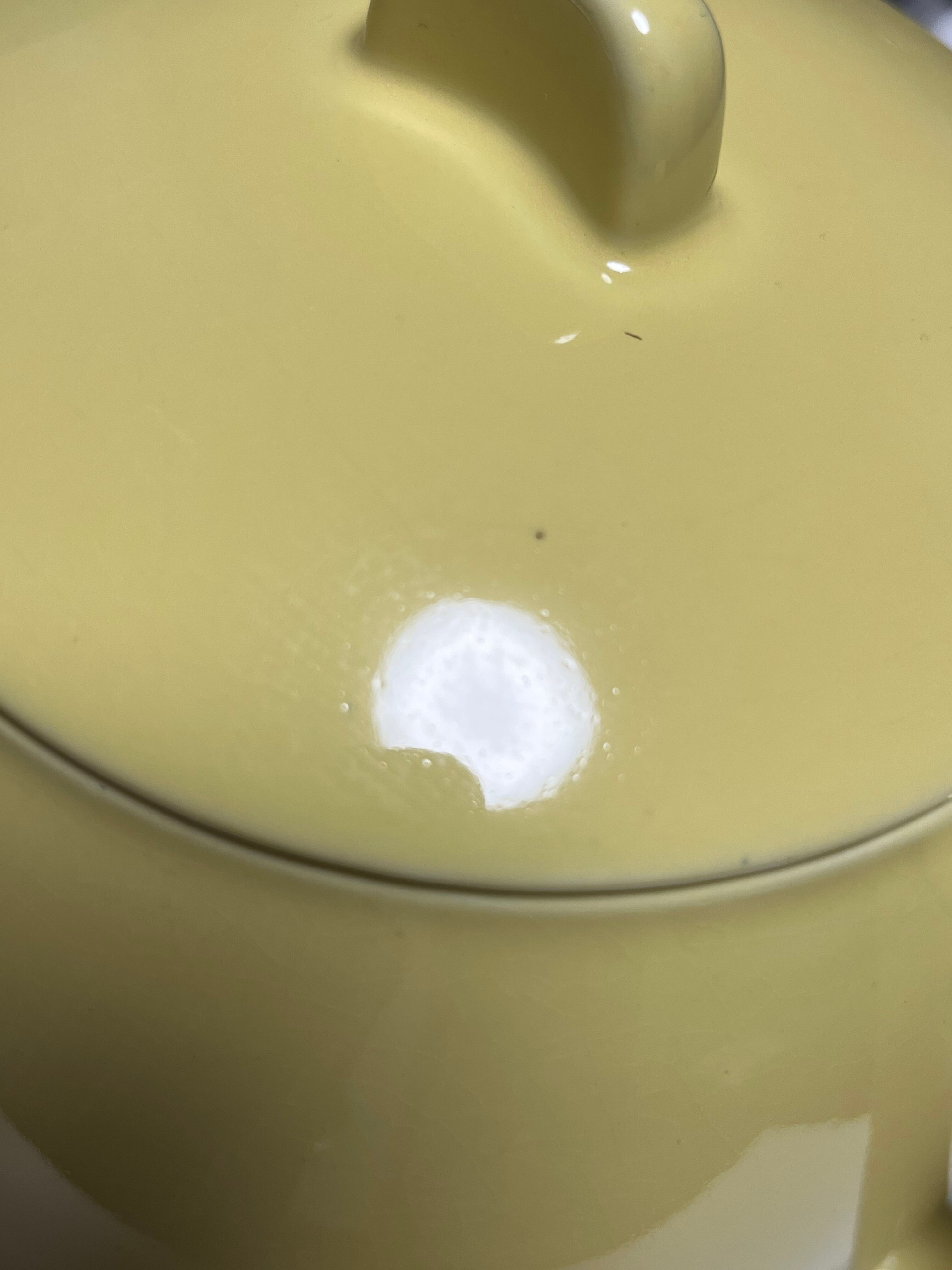 古い物だと70年、新しい物でも50年程も前の古い物ですが、僅かなメタルマークのような薄い着色を感じる程度で擦れや掻き傷は見当たらず、とてもきれいなコンディションです。人工的な光にかざすと表面に僅かな貫入を感じます。また、ポットの内底にも微細な貫入のようなものを感じますが、この時代の陶器には無い方が珍しいものなので特性としてご理解ください。