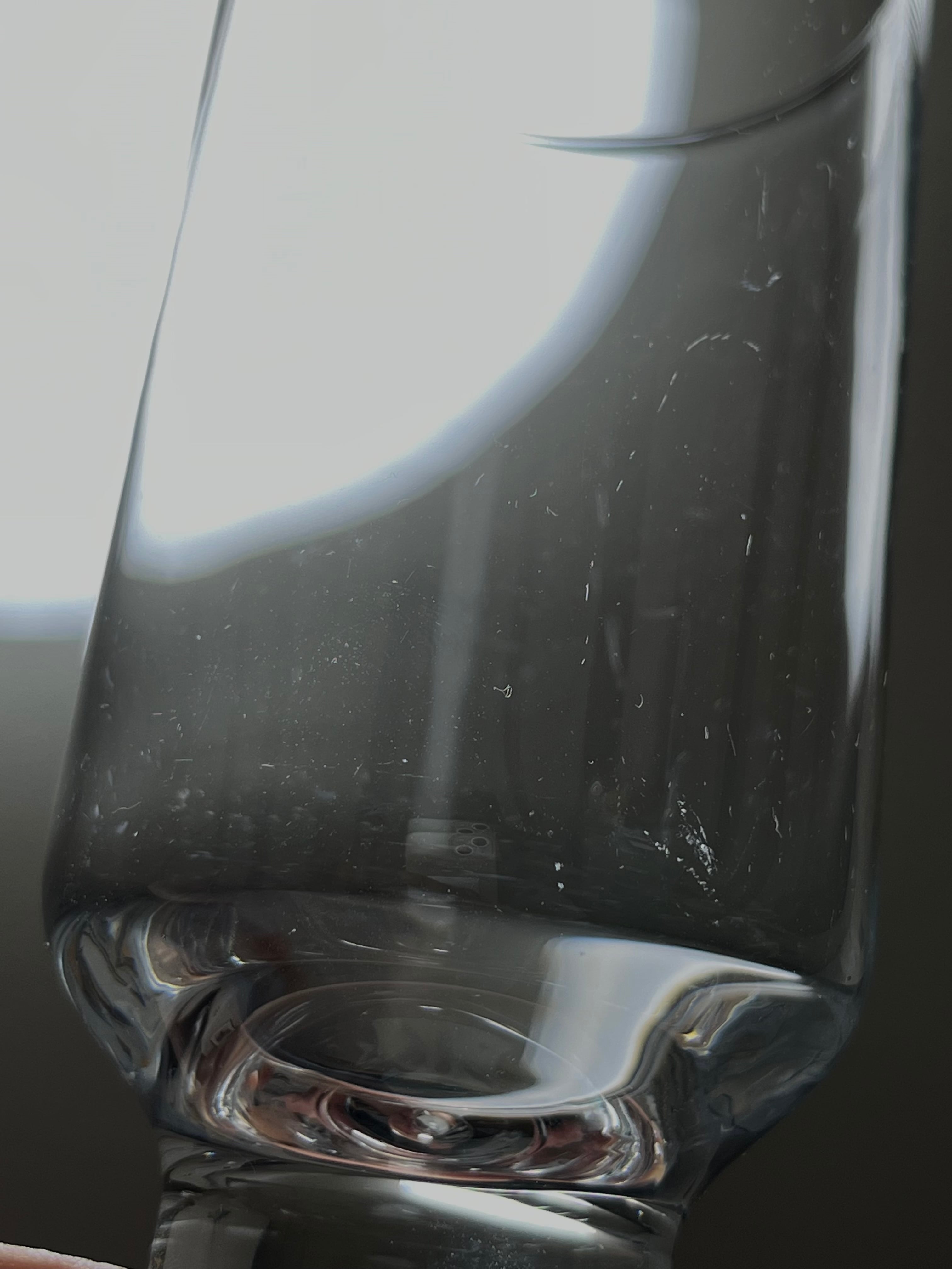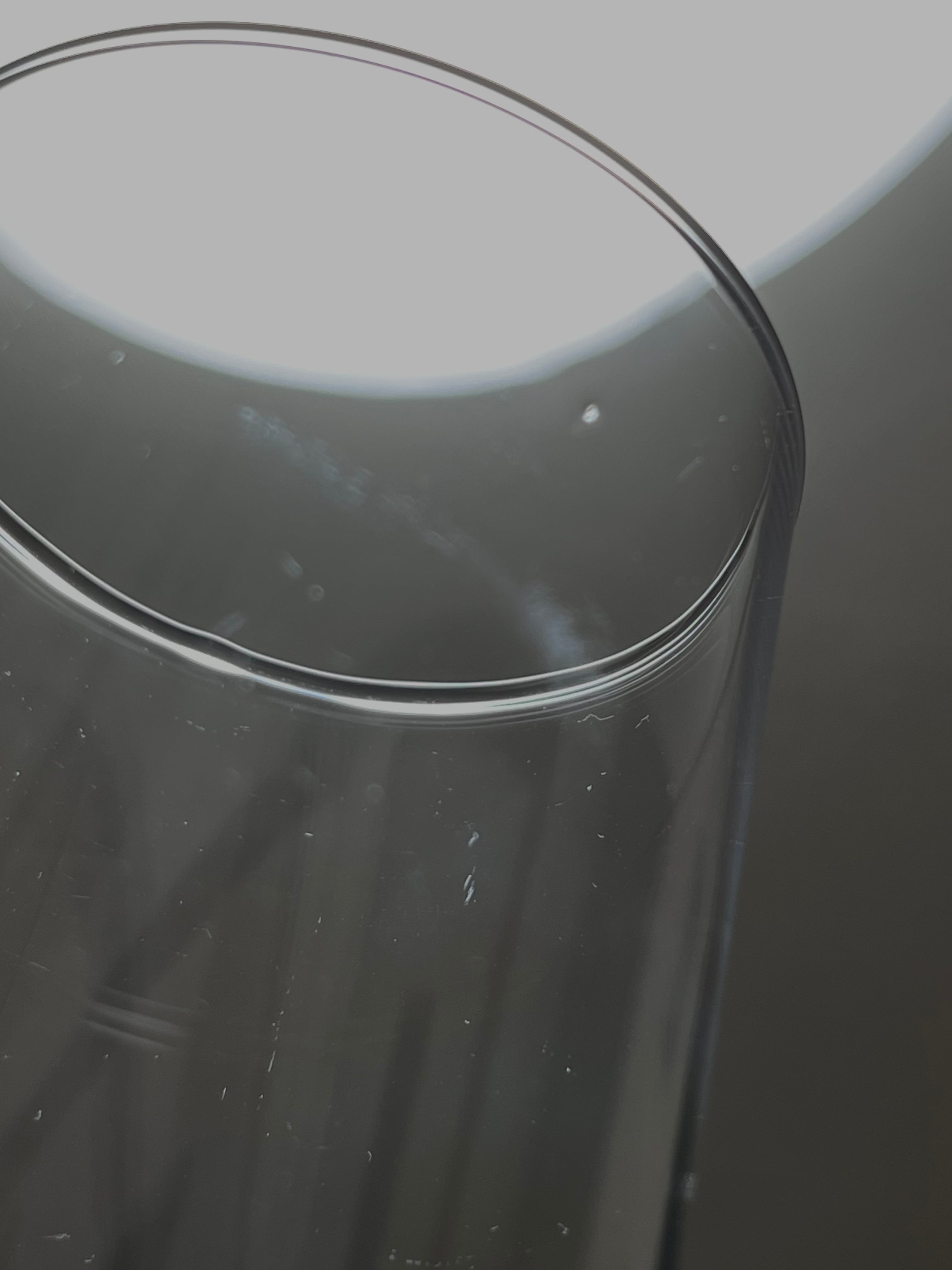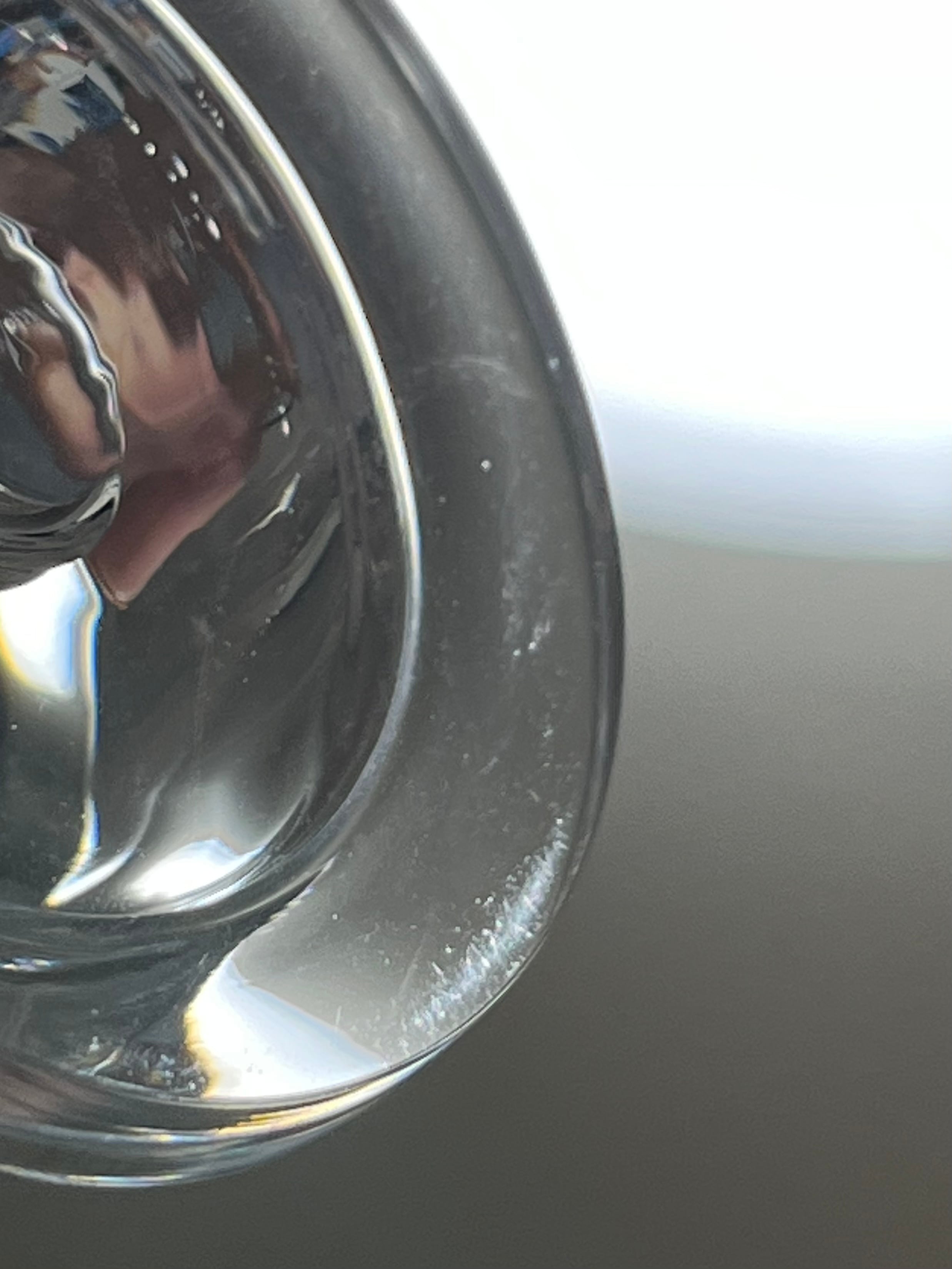 また、製造時のものですが、口縁に少し揺らぎとヨレがあります。マウスブロー製品の特性として理解できる範疇で美観を損ねる物ではありません。また微細な気泡の混入はいずれの個体にも見られます。