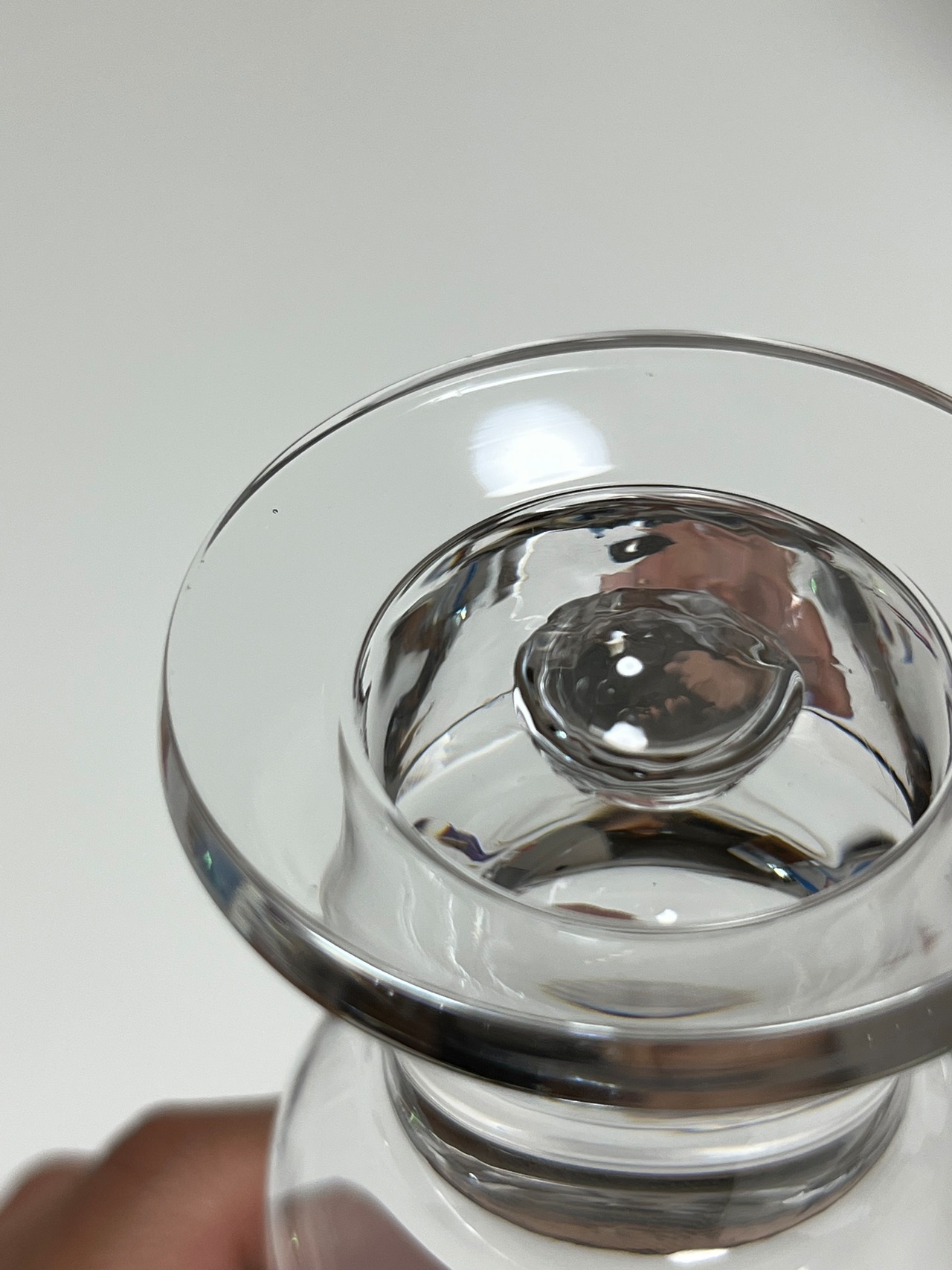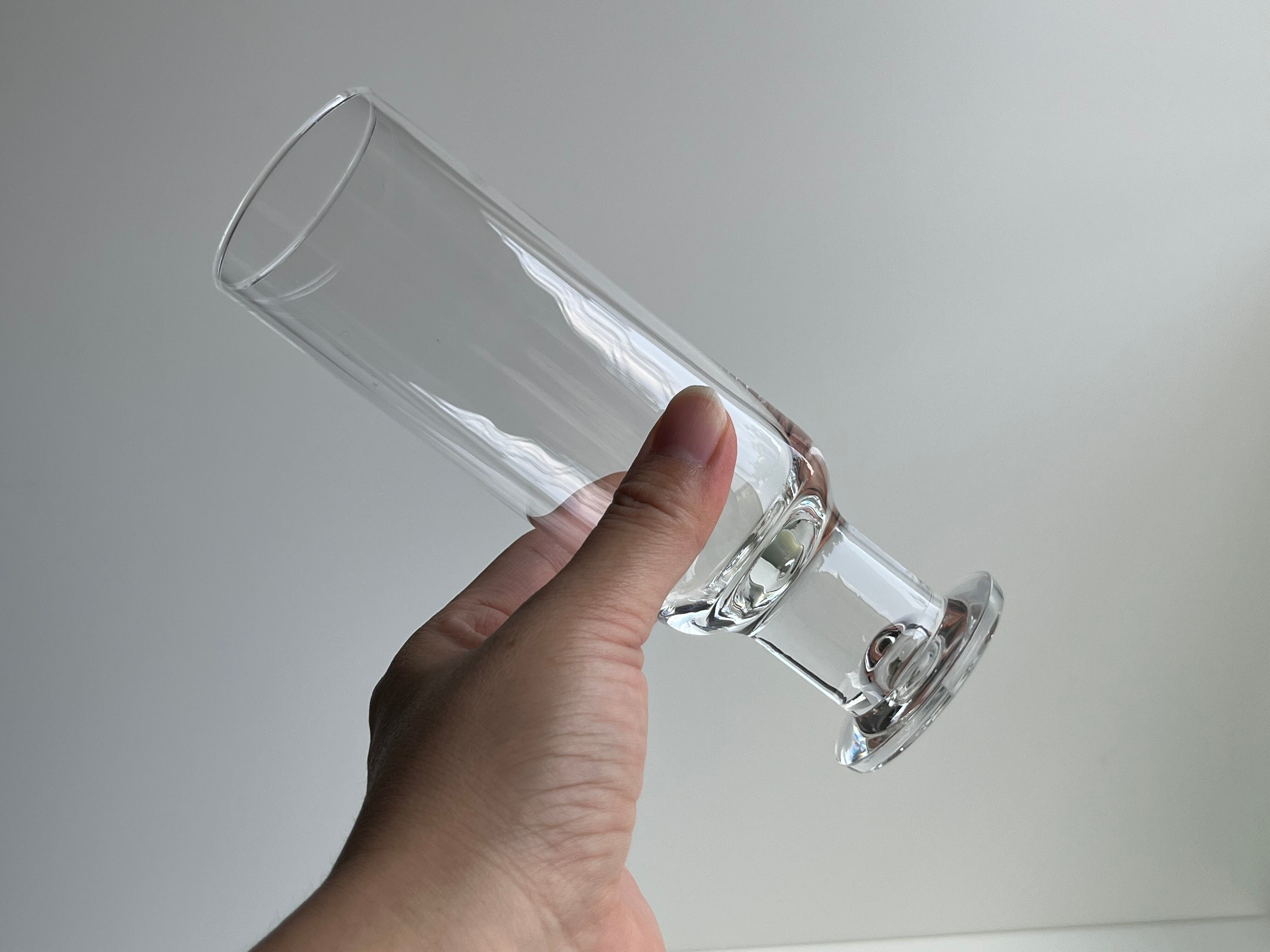 また、製造時のものですが、口縁に少し揺らぎとヨレがあります。マウスブロー製品の特性として理解できる範疇で美観を損ねる物ではありません。また微細な気泡の混入はいずれの個体にも見られます。