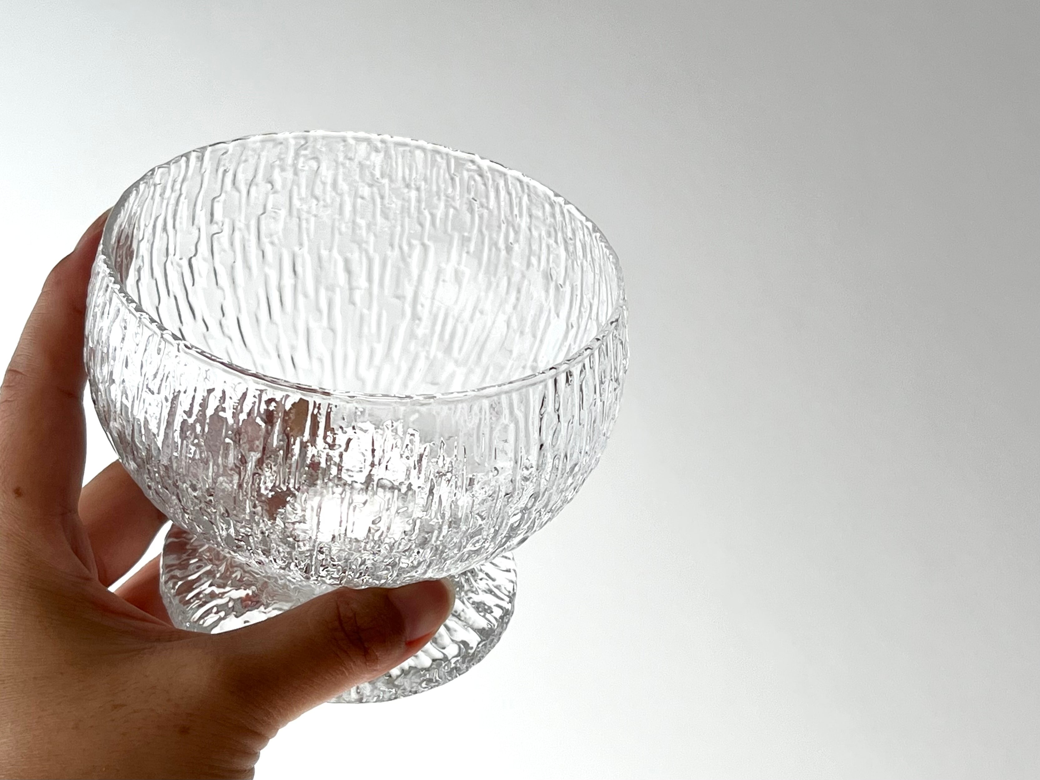 フィンランドのデザイナー、Timo Sarpaneva/ティモ・サルパネヴァが1970年にデザインした、個性的なグラス 「Kekkerit/ケッケリト」の脚付きデザートボウルです。