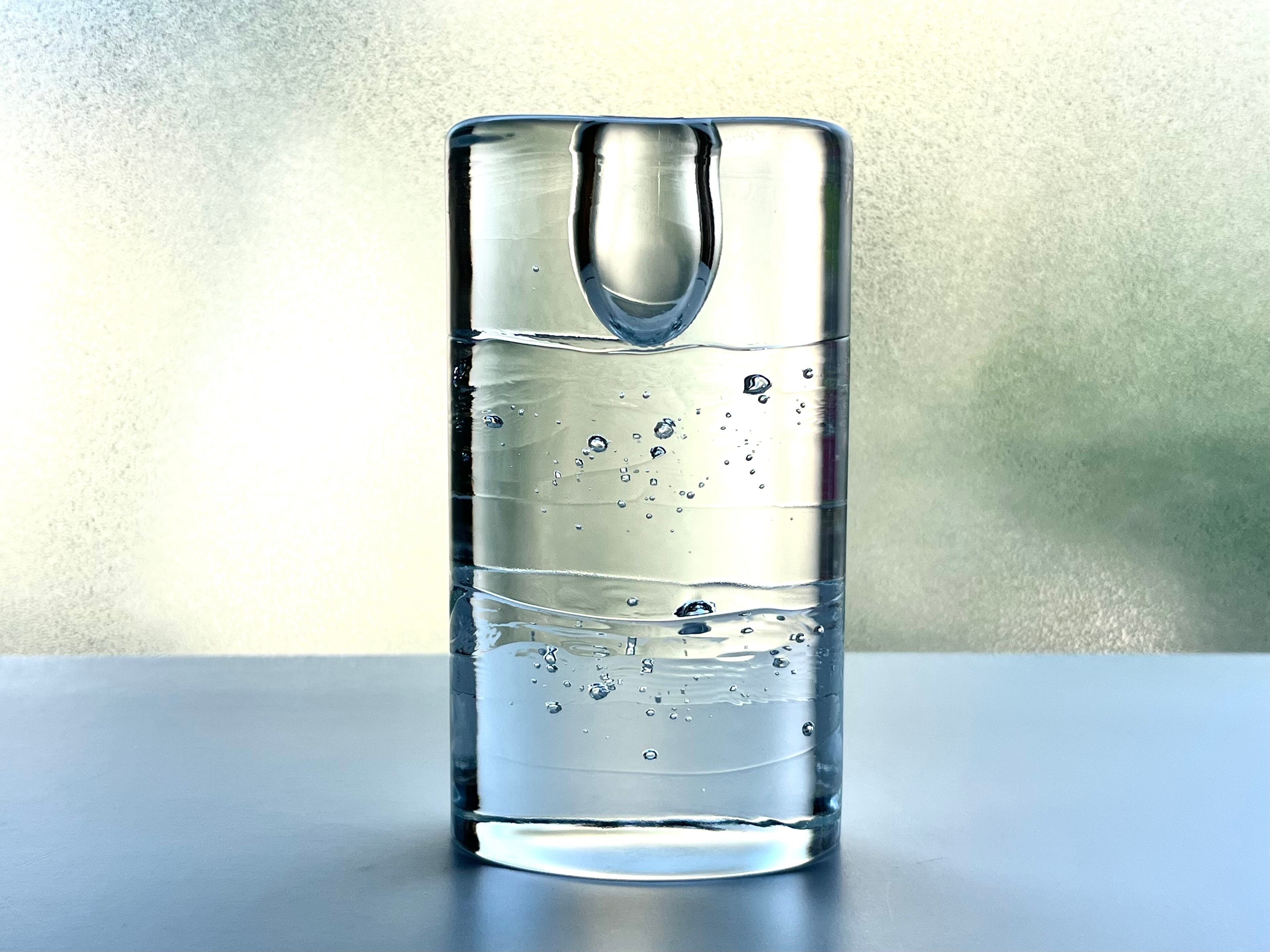 楕円形の円筒状をしたガラスには意図的なシワと、