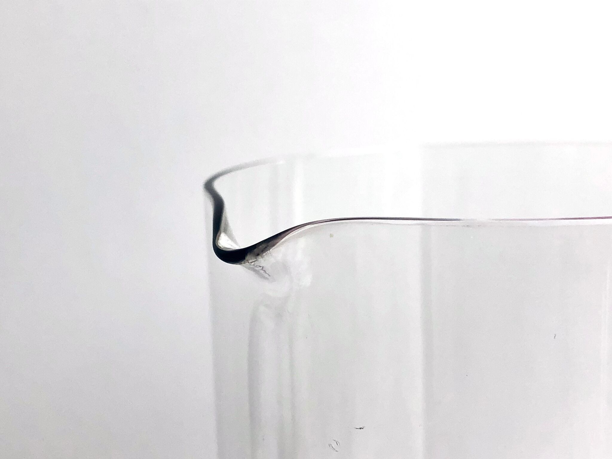 ピッチャーの注ぎ口の下に、目視で確認できる小傷があります。また、側面やそこには細かな擦れがみられますが、ほとんどは人工的な光にかざして確認すると見えてくるようなもので自然光ではあまり気にならないものです。