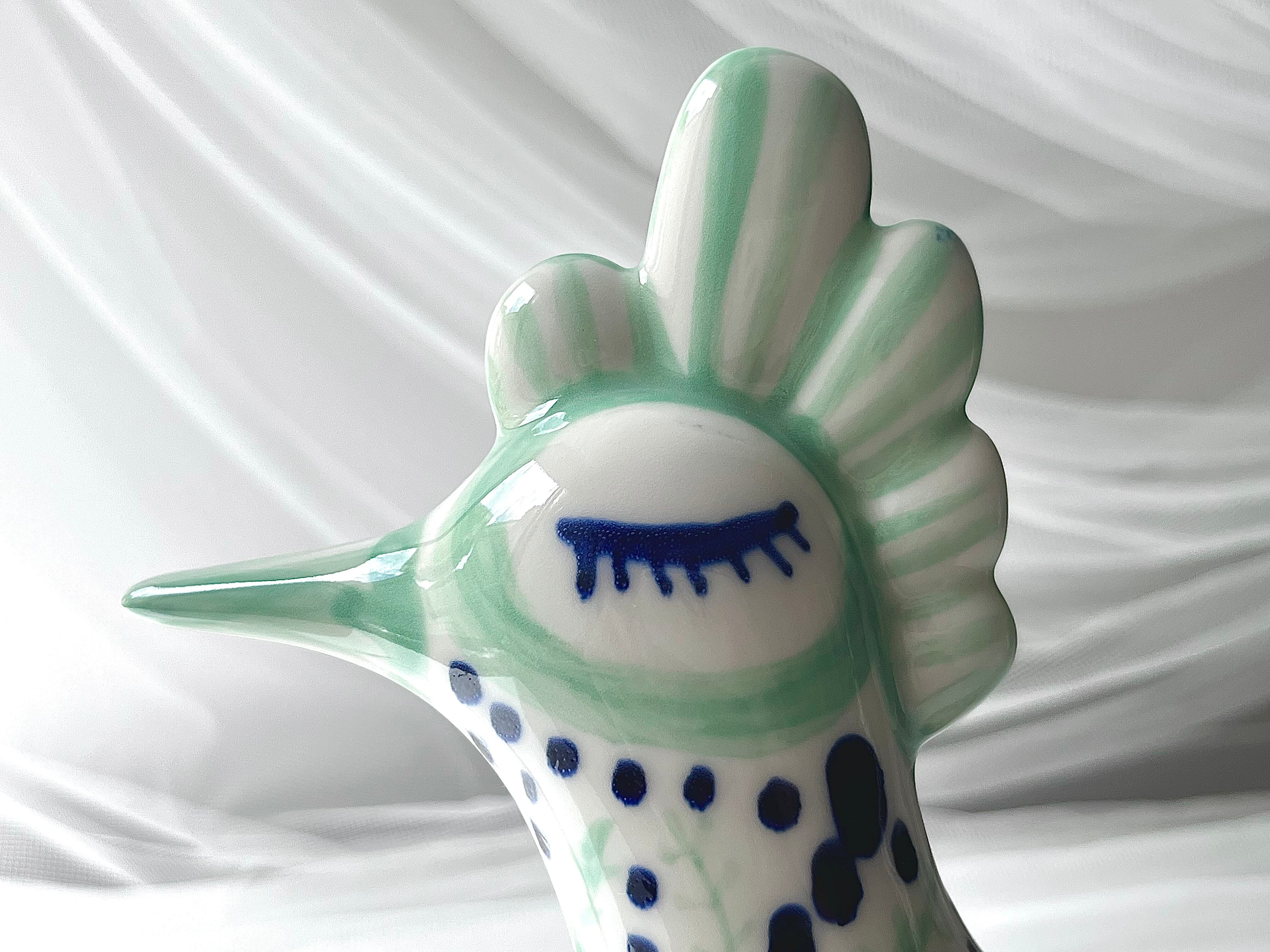 【ご売約品】Heini Riitahuhta Rooster / ミントグリーン 花柄 ・ヘイニリータフフタ ニワトリ 鳥笛 アラビア Arabia Art Department