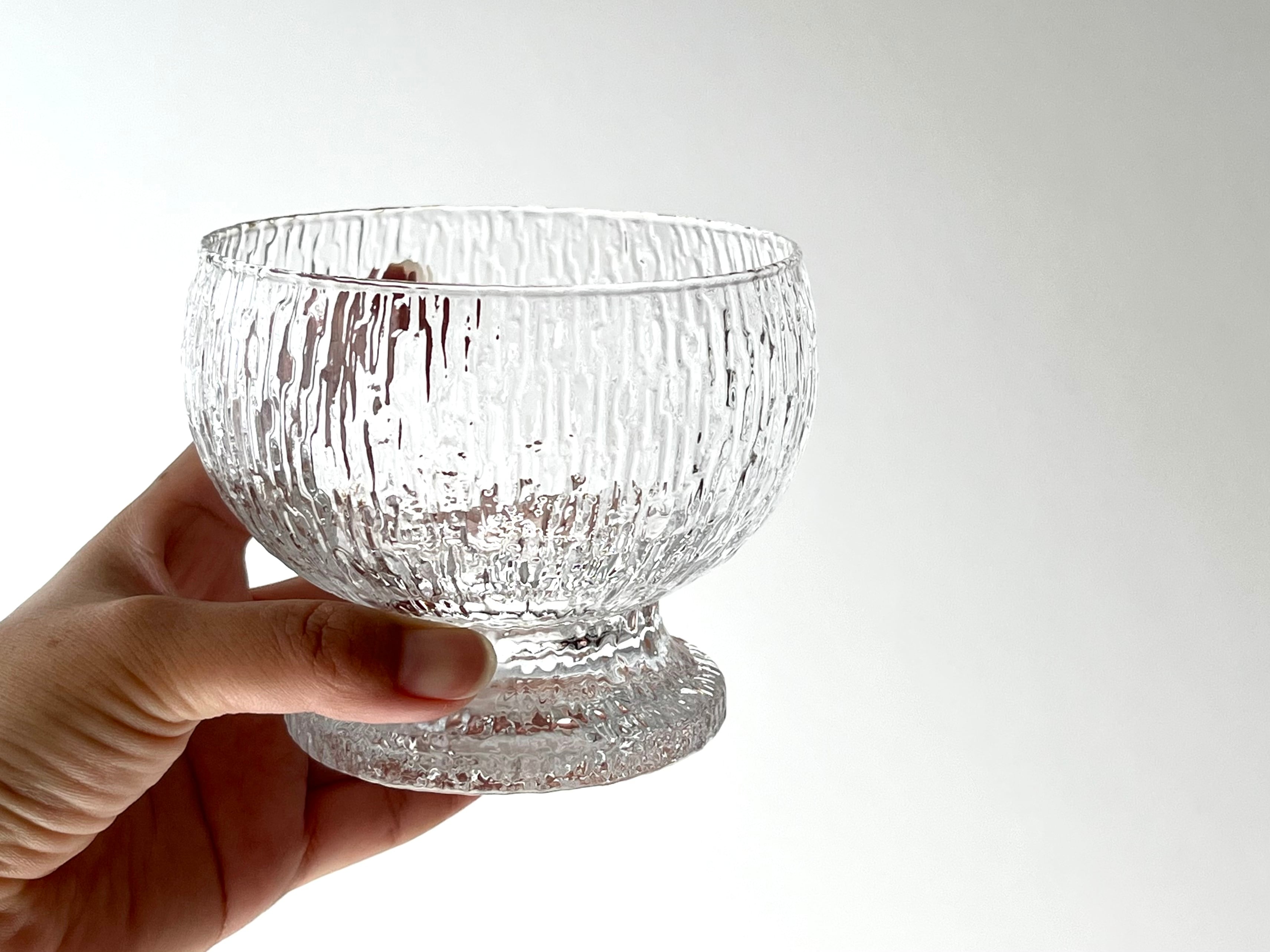 フィンランドのデザイナー、Timo Sarpaneva/ティモ・サルパネヴァが1970年にデザインした、個性的なグラス 「Kekkerit/ケッケリト」の脚付きデザートボウルです。