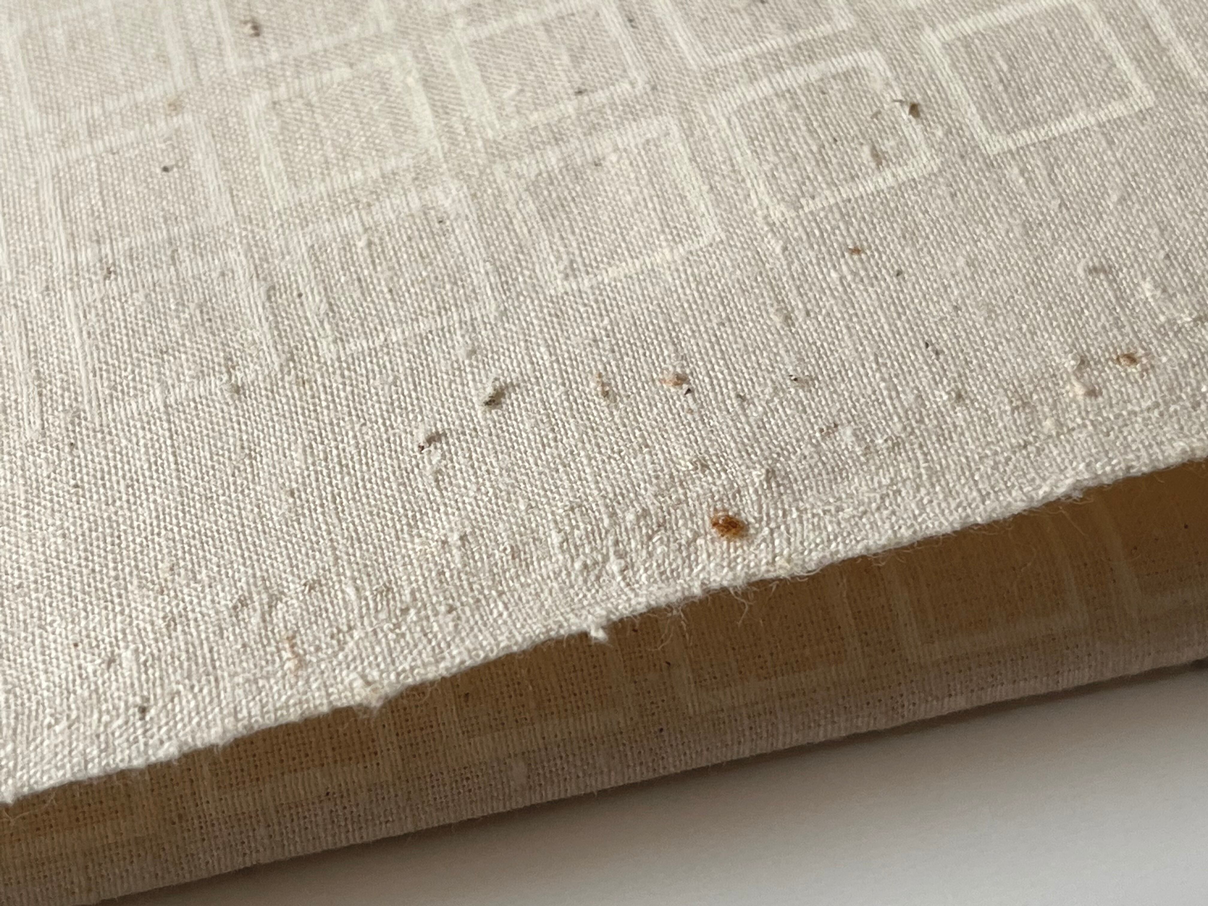 素材の特性上、植物の繊維等がそのまま織り込まれており、茶色い点や線が生地に含まれます。その為、素材上どうしても出来てしまうネップ(生地を作るための撚糸や素材の小さなコブ)がありますが製品の特性としてご理解ください。
