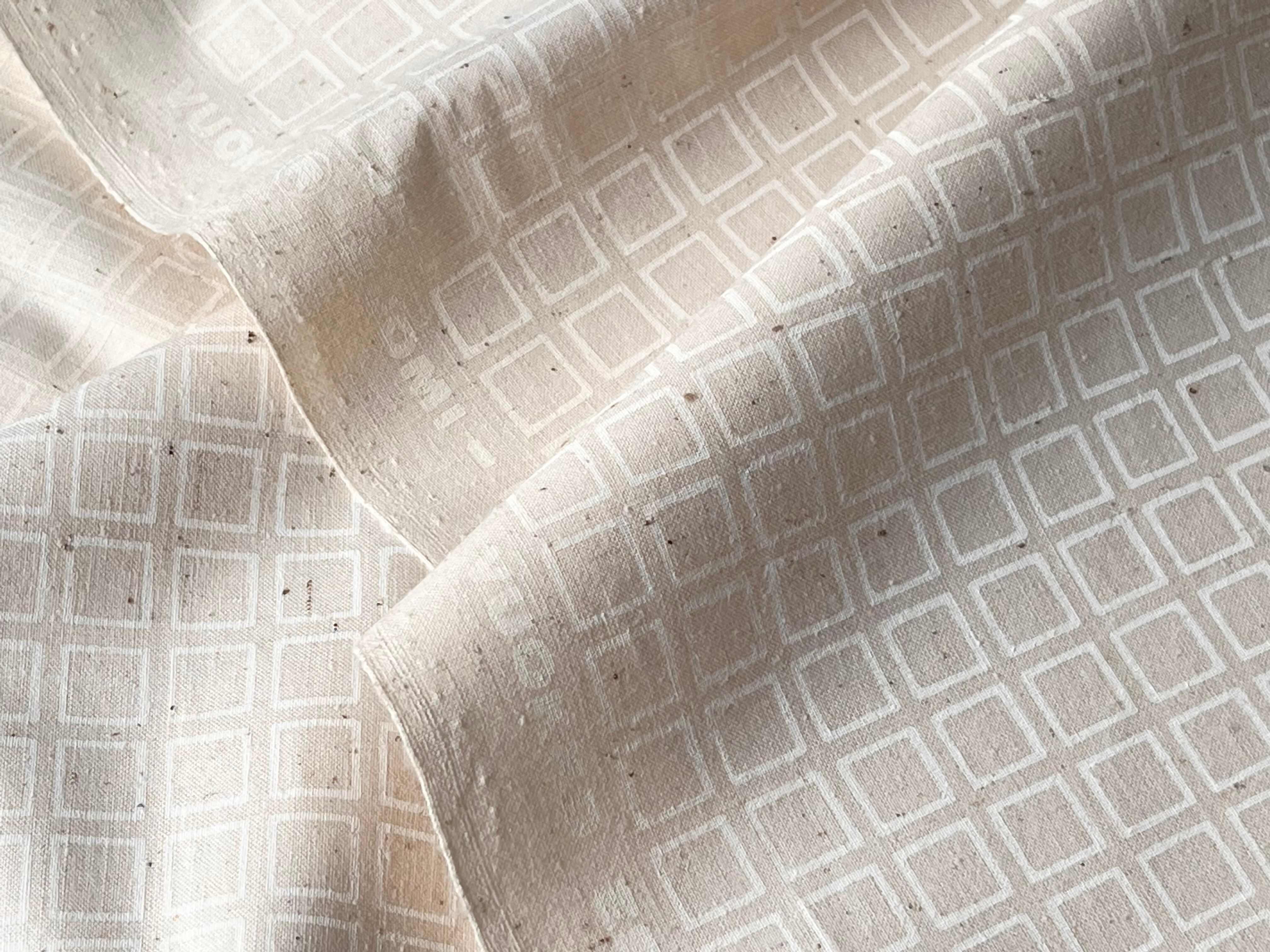 素材の特性上、植物の繊維等がそのまま織り込まれており、茶色い点や線が生地に含まれます。その為、素材上どうしても出来てしまうネップ(生地を作るための撚糸や素材の小さなコブ)がありますが製品の特性としてご理解ください。