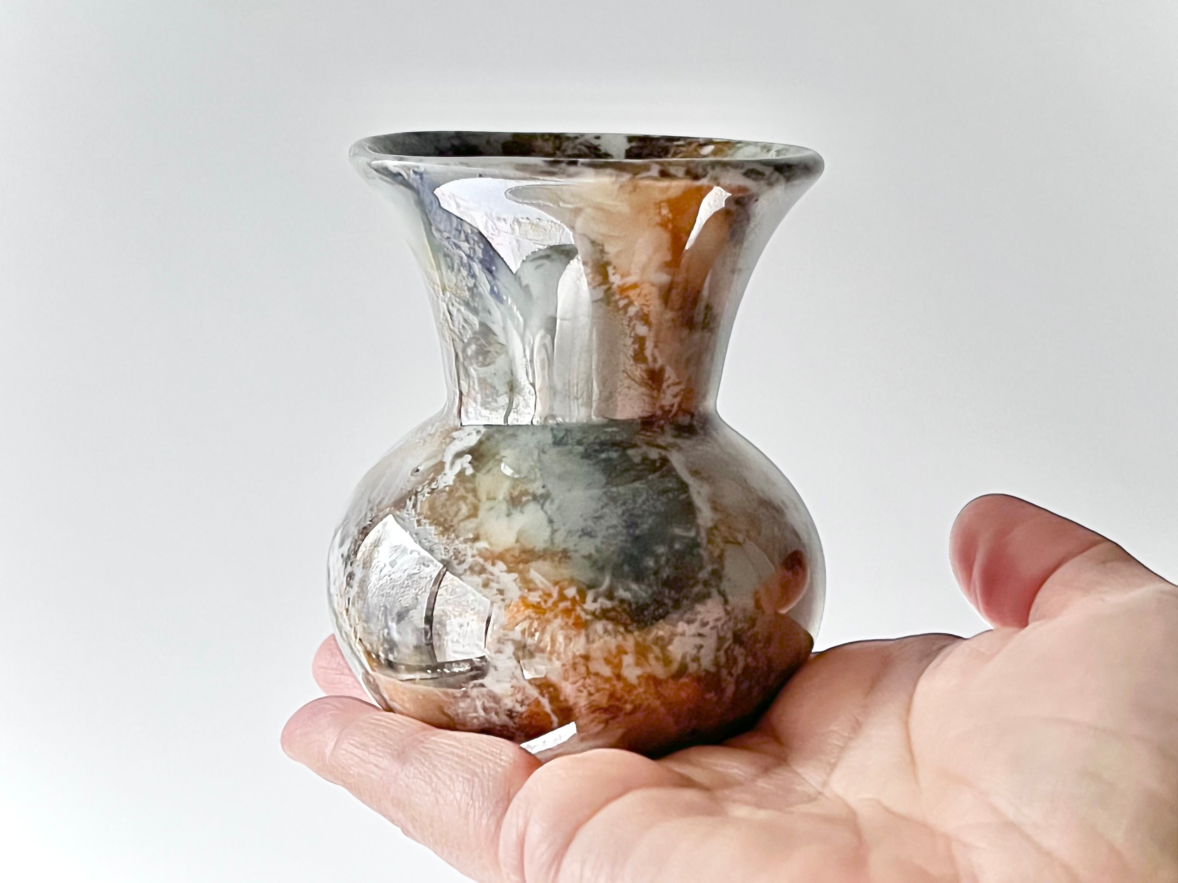 小さくとも存在感のある花器で、口元の窄まった形状は花も生けやすく、普段はこのまま飾っておいてもオブジェとして十分に楽しめるかと思います。