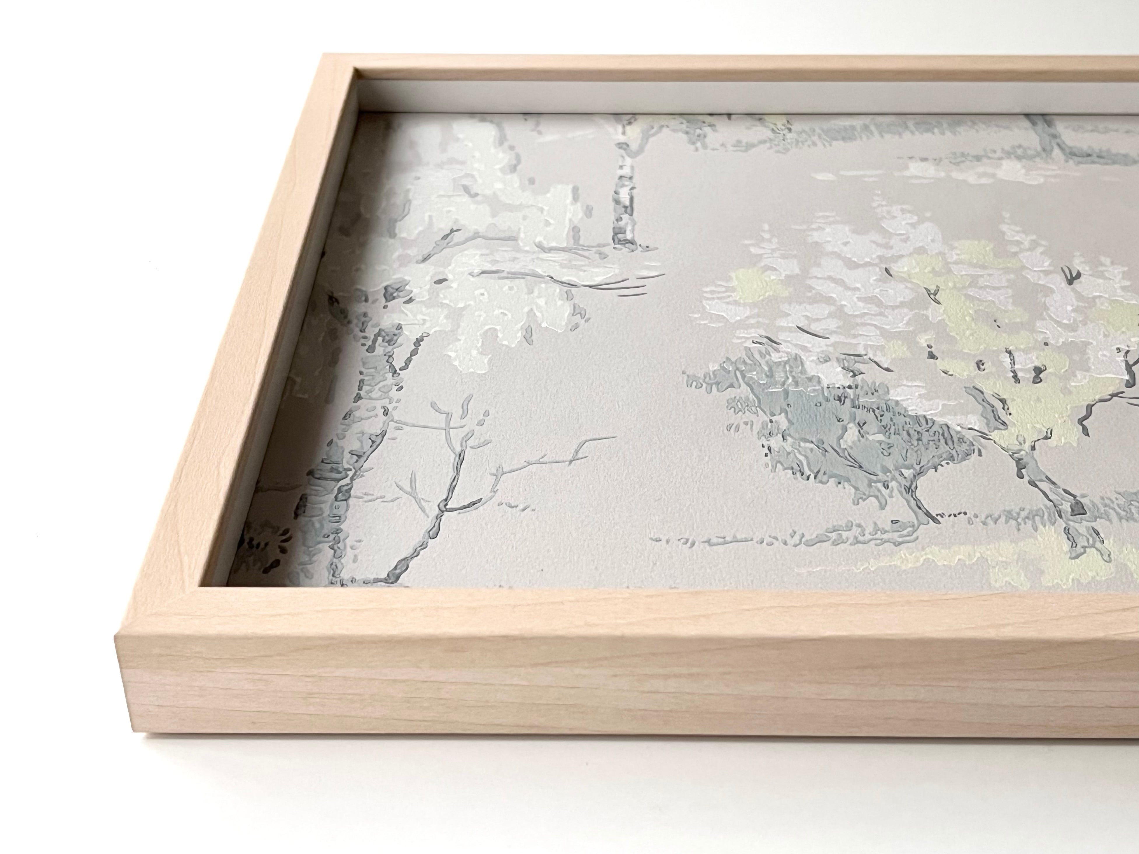 【ピルグレン&リトラ】Koivu ・白樺の森の冬景色を描いた壁紙を額装したもの