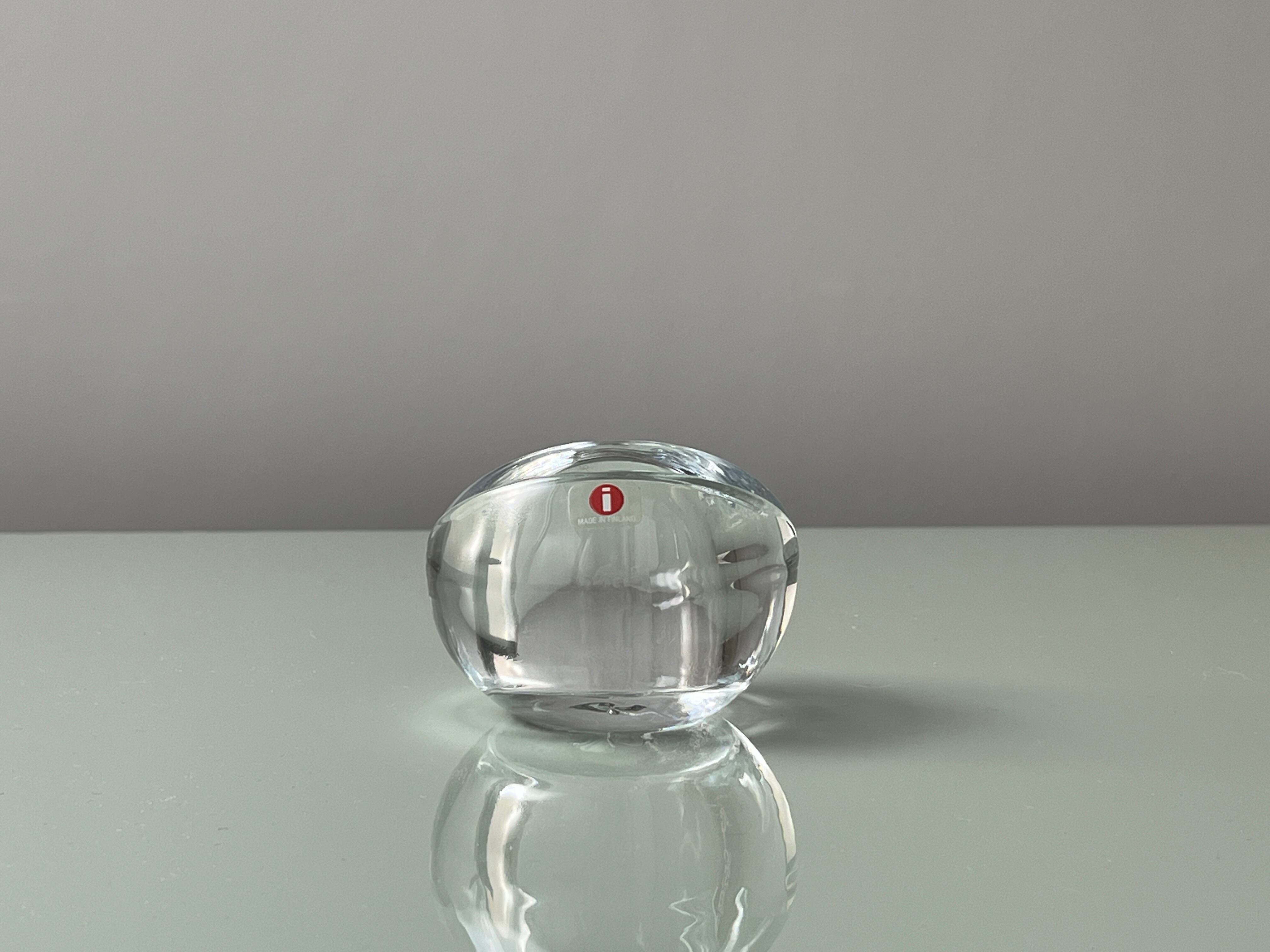 重量があるので、底に若干の擦れがありますが、表面には一か所極微細な擦れがあるだけでその他気になる傷や汚れは無く大変きれいな状態です。横長のイッタラシールもきれいに残っています。なお、製造時のものですが、底にはガラスが固まる際に生じた皺や筋が見られます。