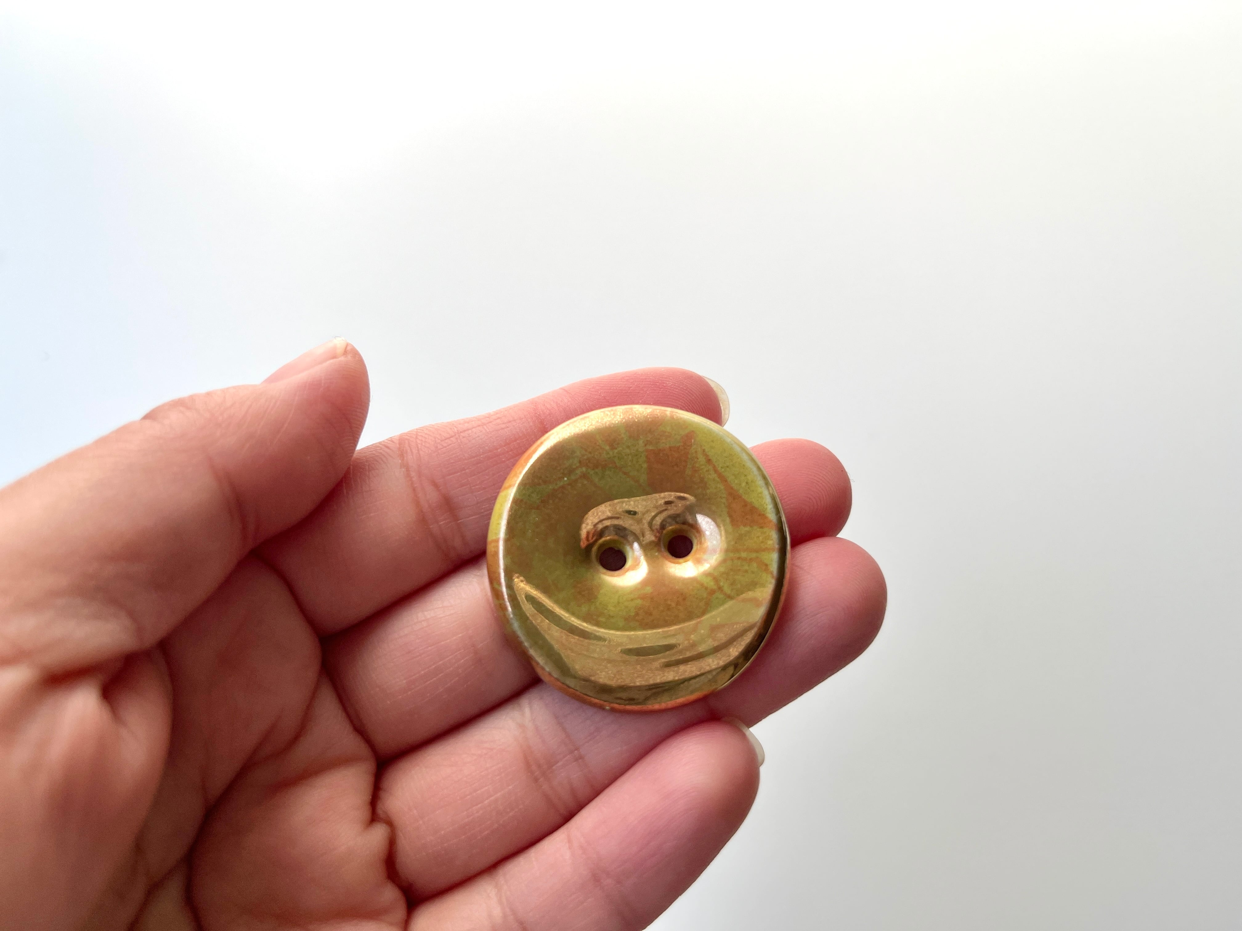 手仕事で仕上げた、ボタン型の小さなアートピースです。