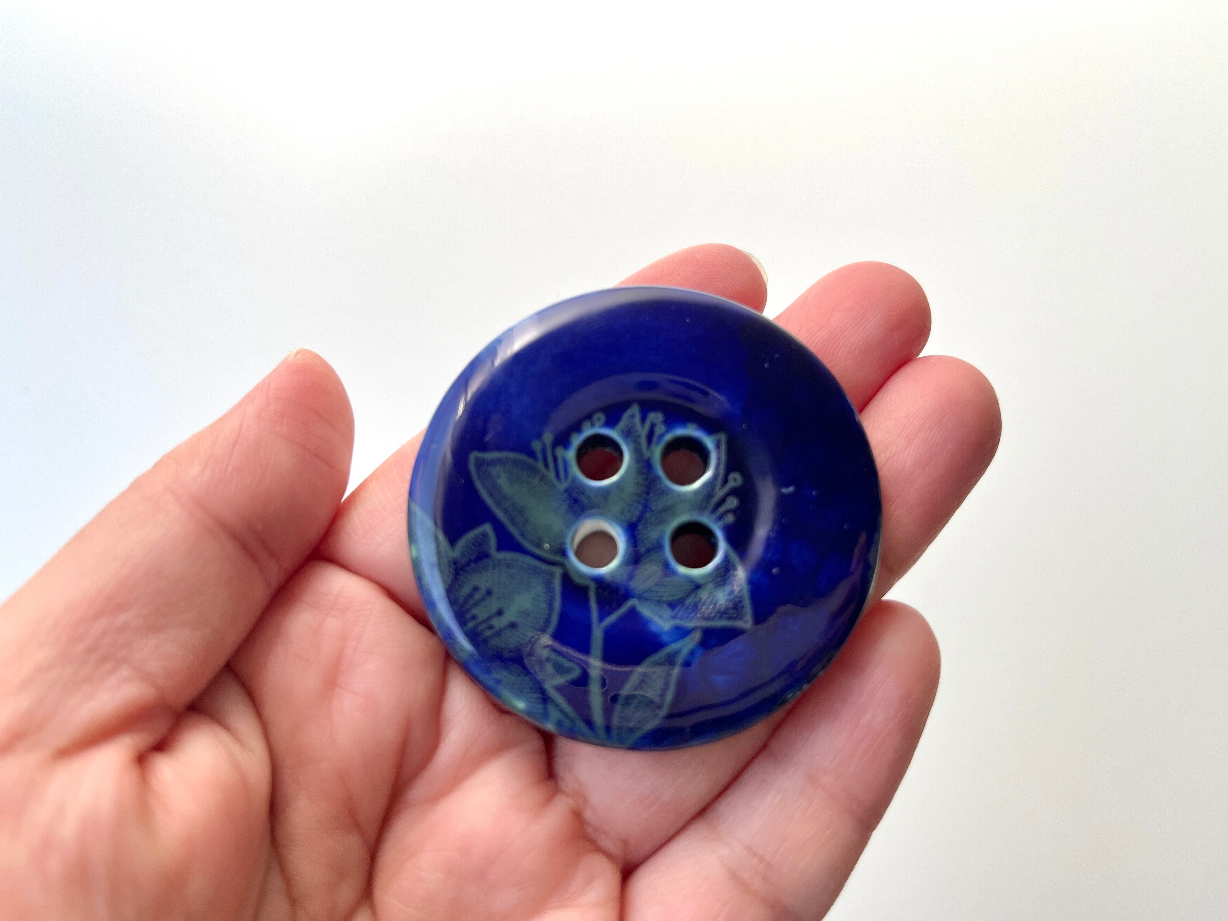 【Heini Riitahuhta】 Korunappi (Cobalt blue/花模様)(XL)/ ヘイニリータフフタ / コルナッピ ジュエリー ボタン / Arabia Art Department