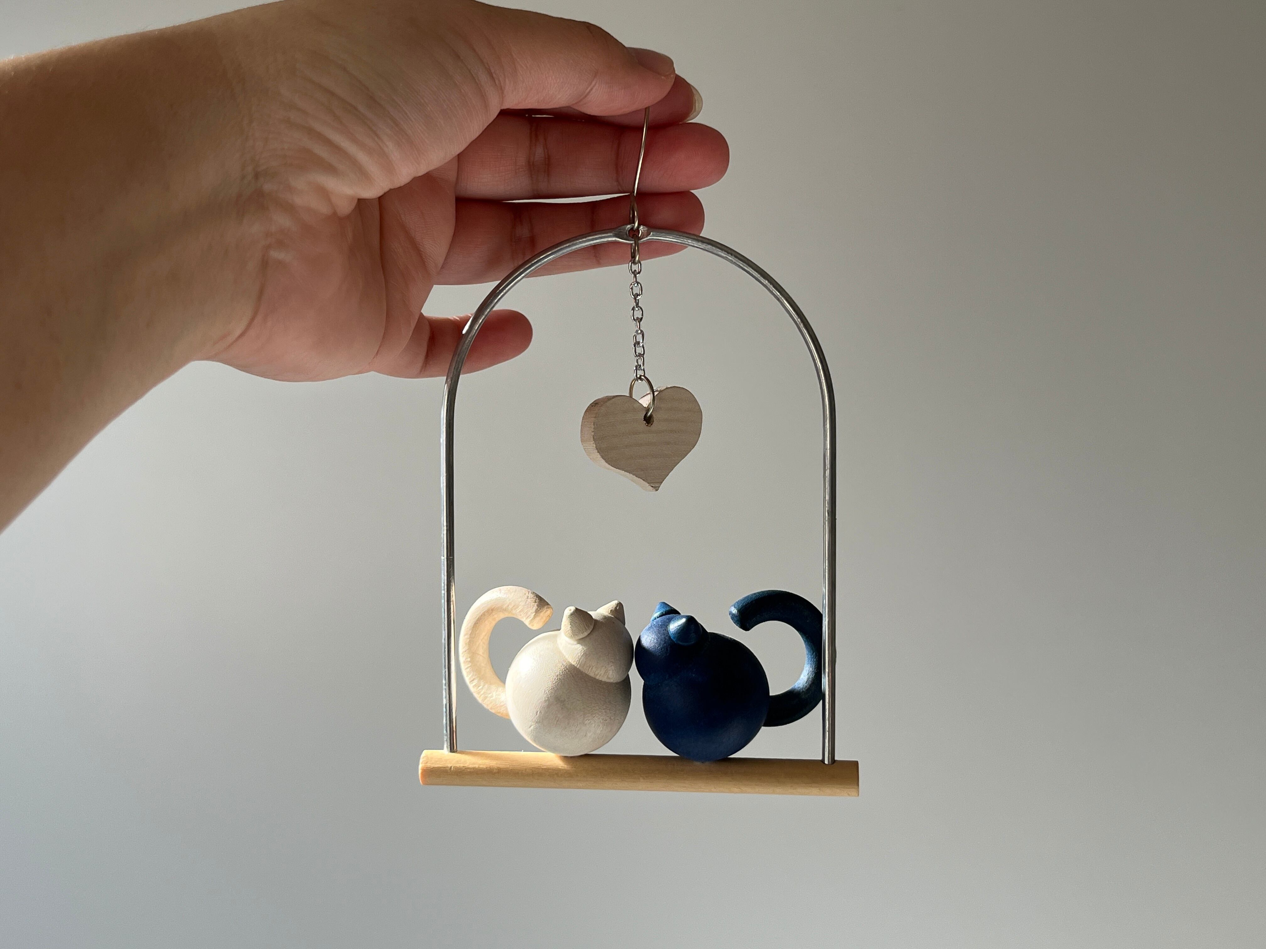 ブランコの上で向かい合っている何ともかわいらしいお品です。