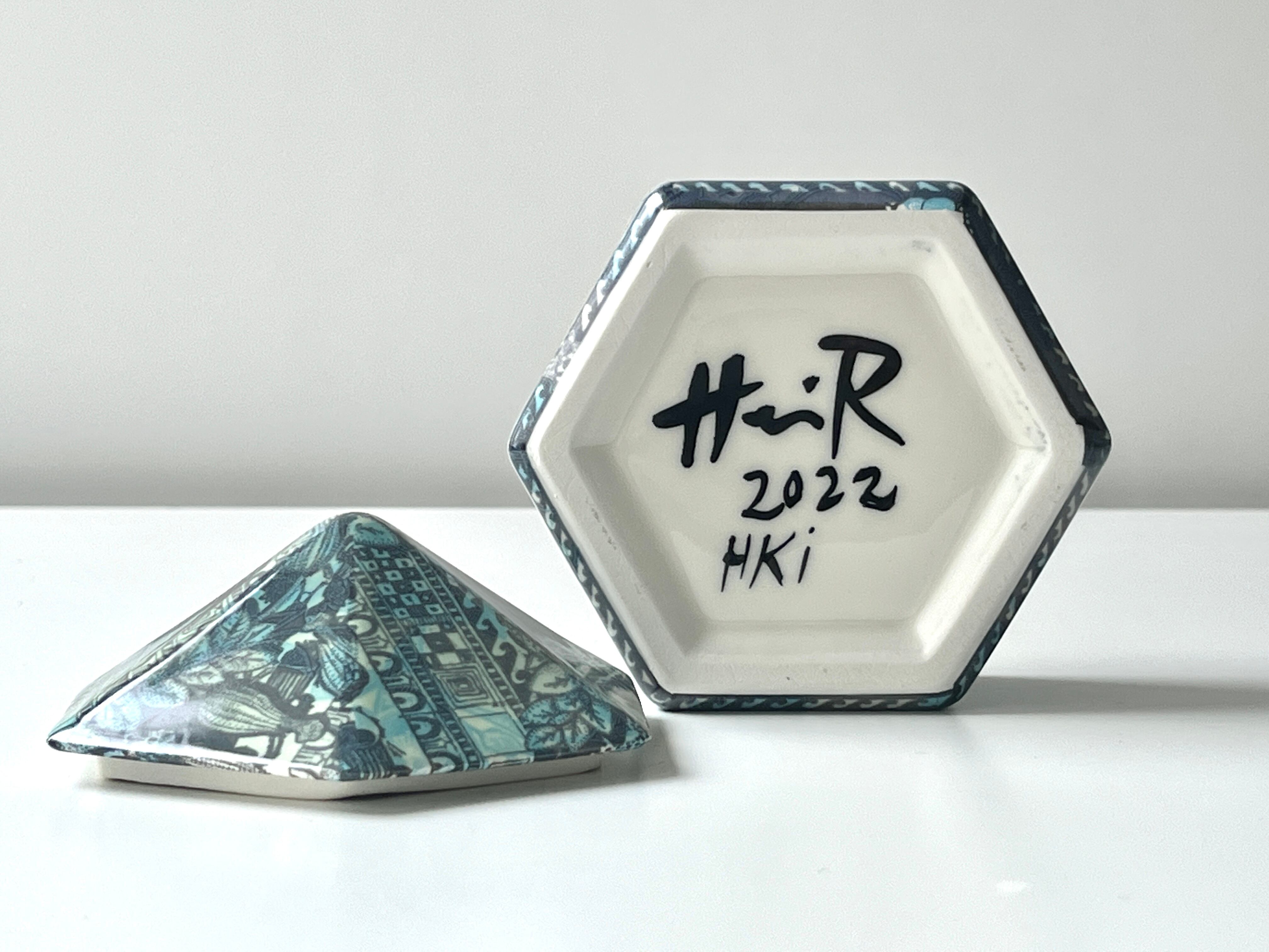 アラビアの人気デザイン、RunoやHuvilaのデザイナー、Heini Riitahuhta / ヘイニ・リータフフタ のハンドメイドによる、一点物のアート作品 『Hexagon /ヘキサゴン』のジャー(蓋物)です。