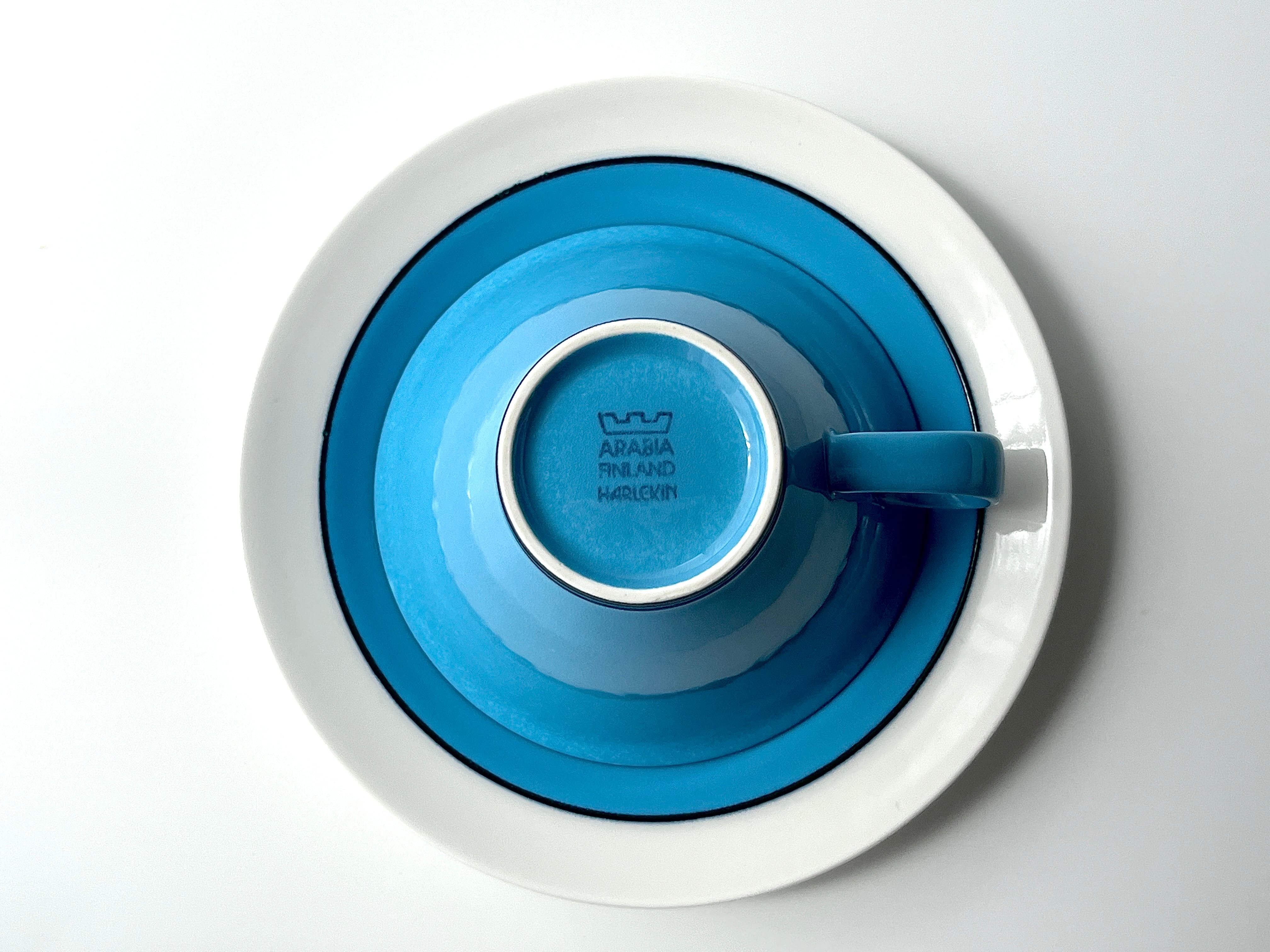 【ARABIA】Harlekin turquoise ヴィンテージ ティーカップ&ソーサー(A)・アラビア ハレキン ターコイズ