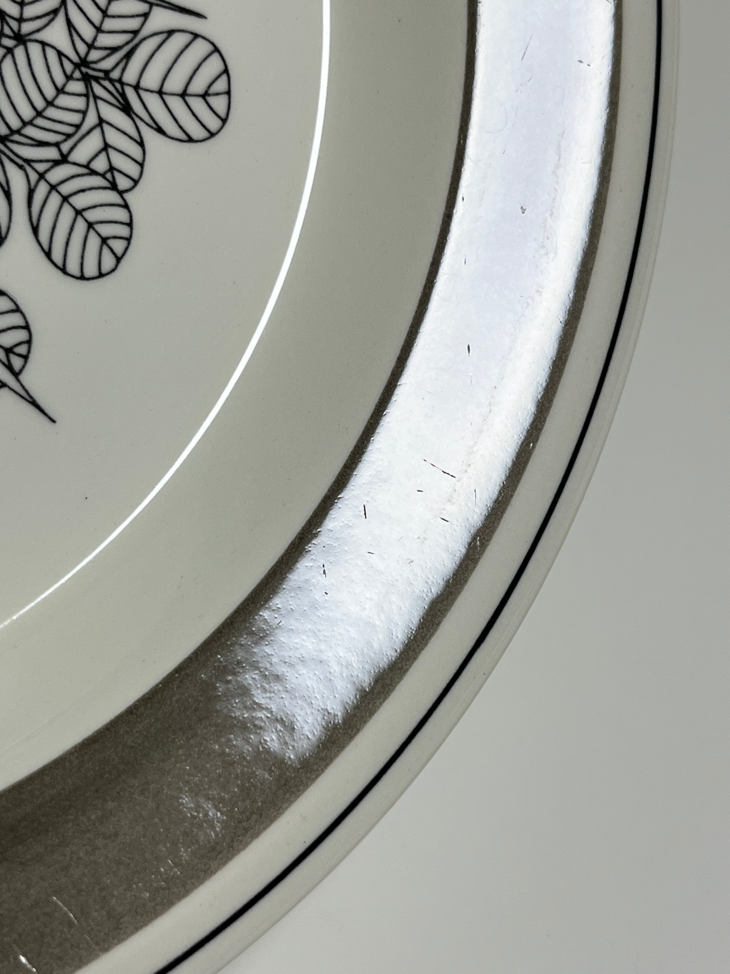 リムとプレートの表面にややカトラリー擦れが見られますが、プレート表面のものは特に局所的で周囲の艶は新品のようにしっかりとある状態です。使用頻度はかなり少なく、とてもきれいなお品だと思います。
