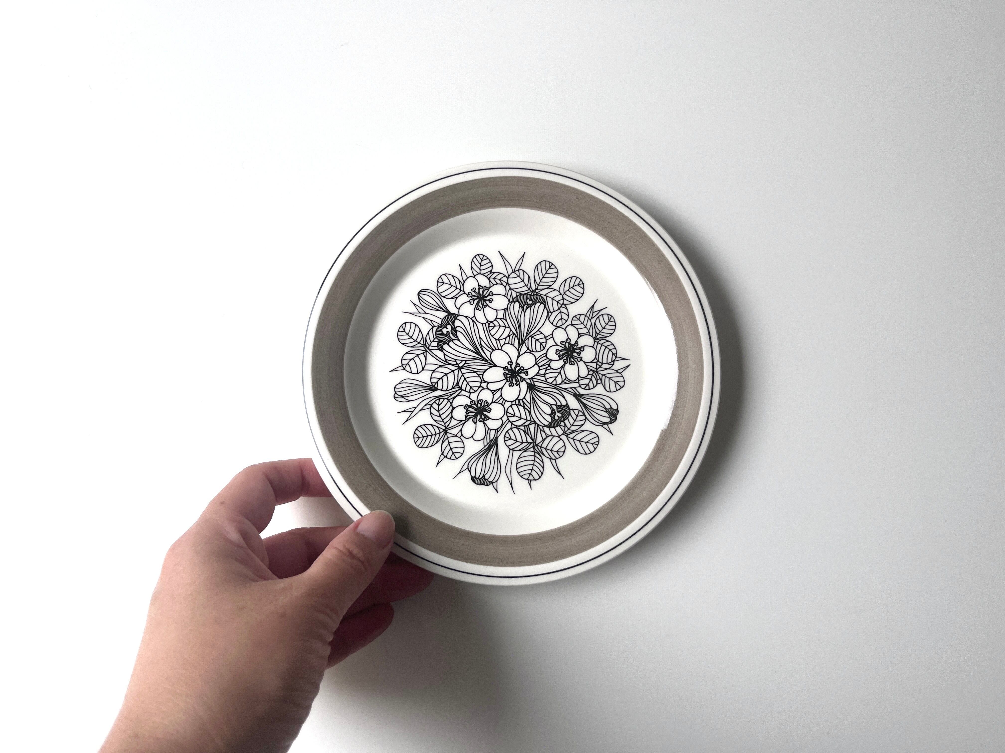 【ご予約品】ARABIA / Esteri Tomula / Krokus グレーリム(17cm ケーキプレート)・エステリトムラ / アラビア / クロッカス