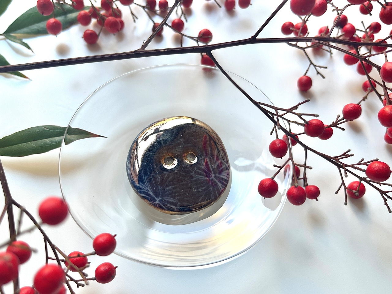 手仕事で仕上げた、ボタン型の小さなアートピースです。