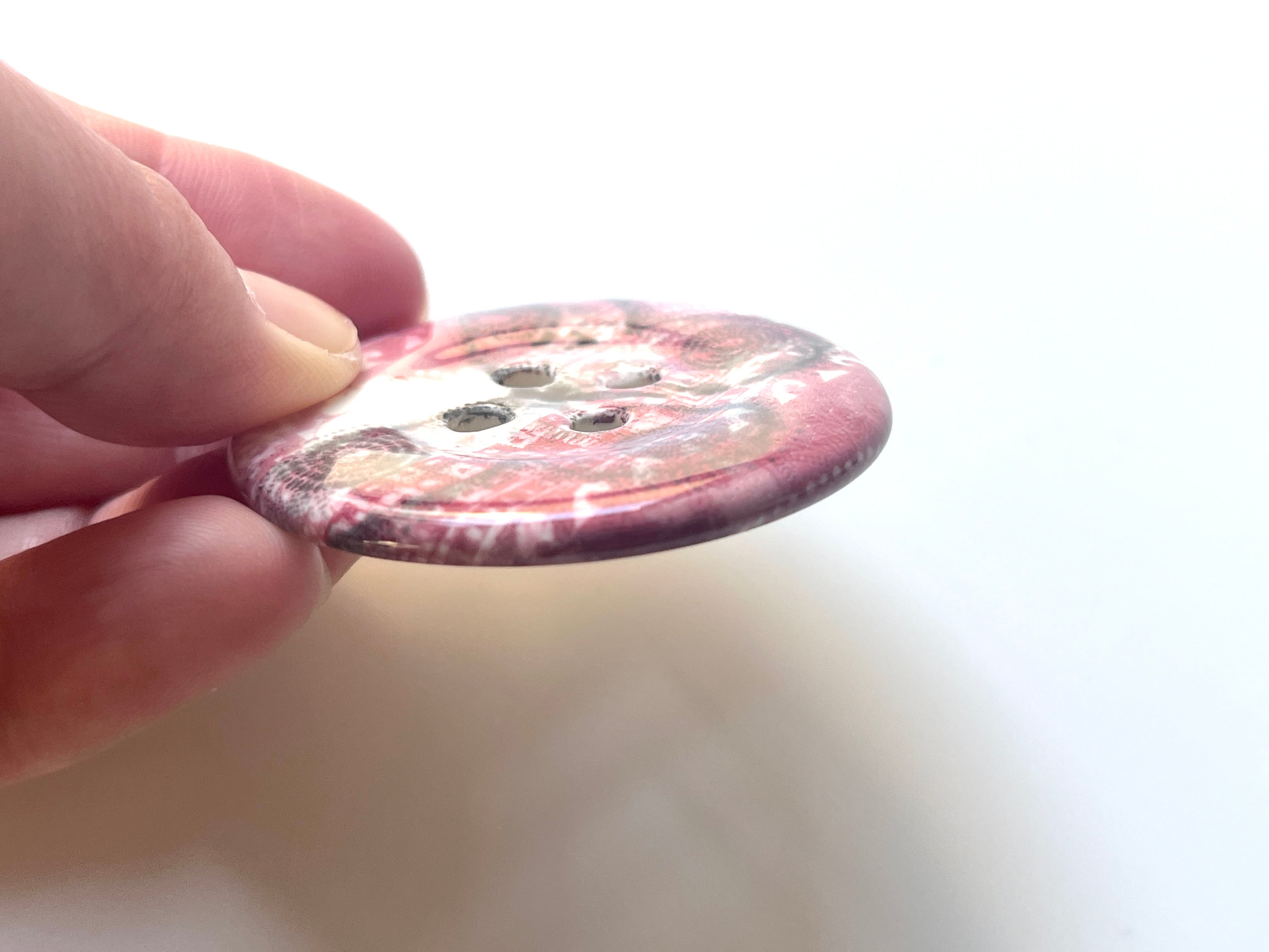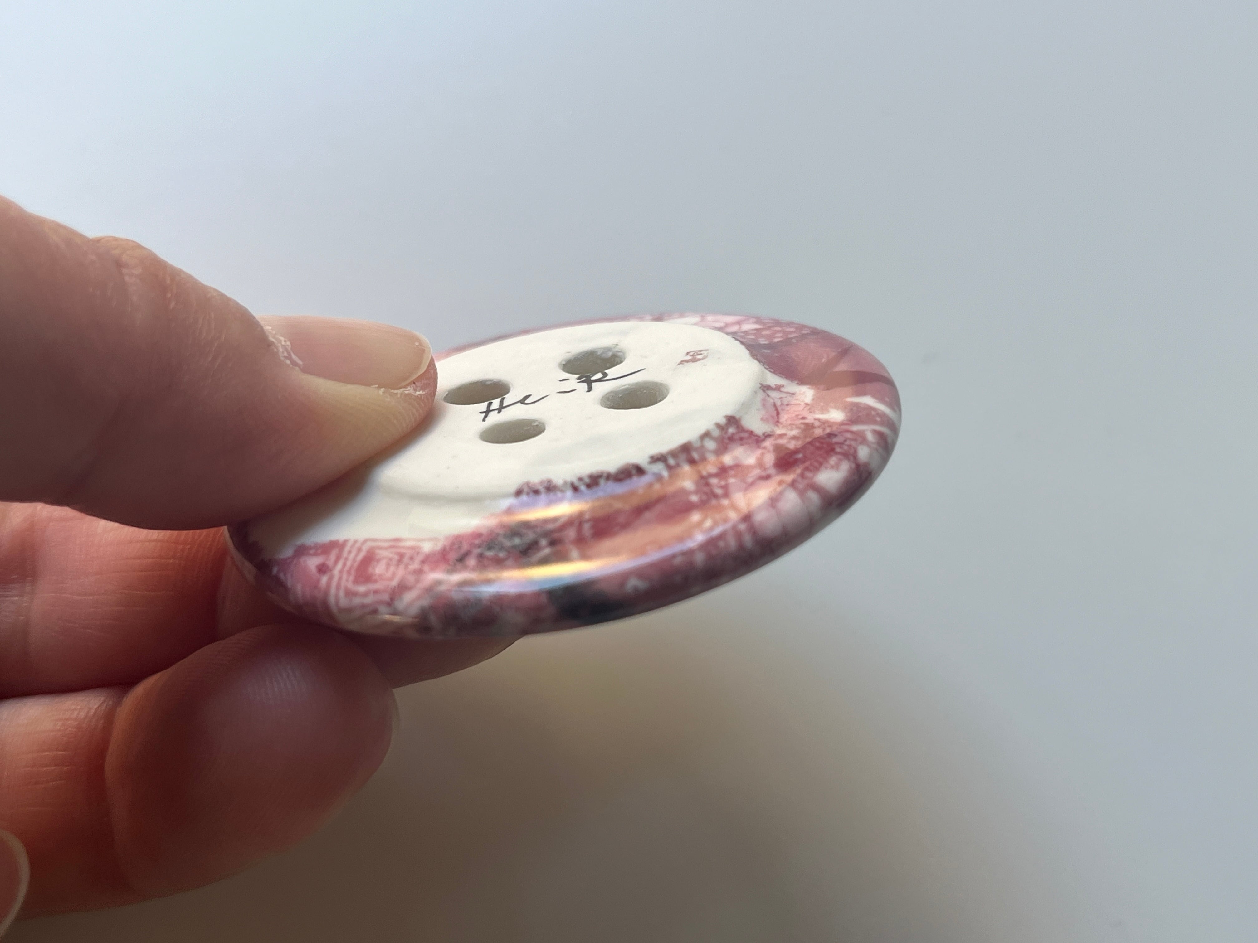 手仕事で仕上げた、ボタン型の小さなアートピースです。