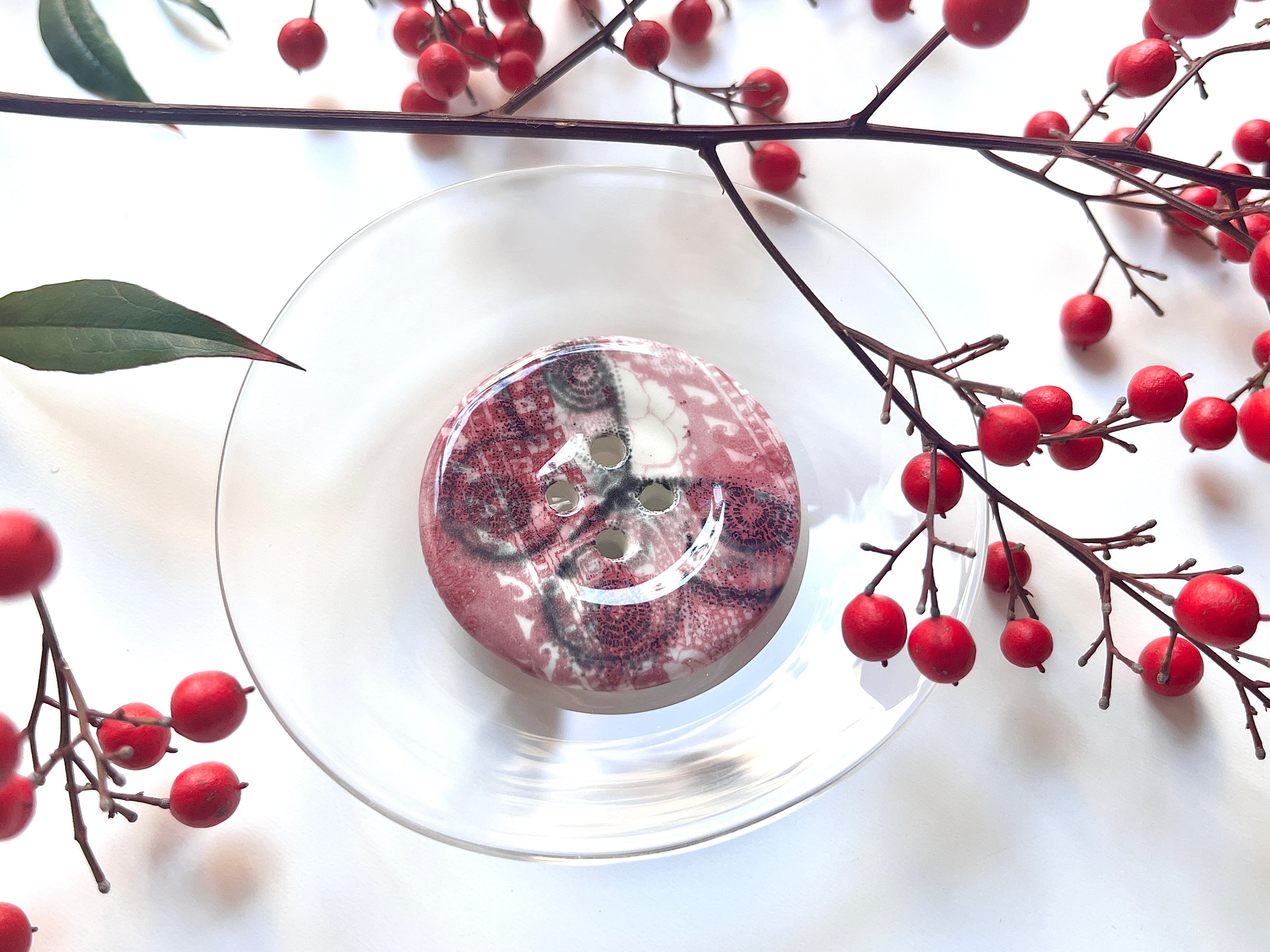 【Heini Riitahuhta】 Korunappi (wine/幾何学+バタフライ)(XL)/ ヘイニリータフフタ / コルナッピ ジュエリー ボタン / Arabia Art Department