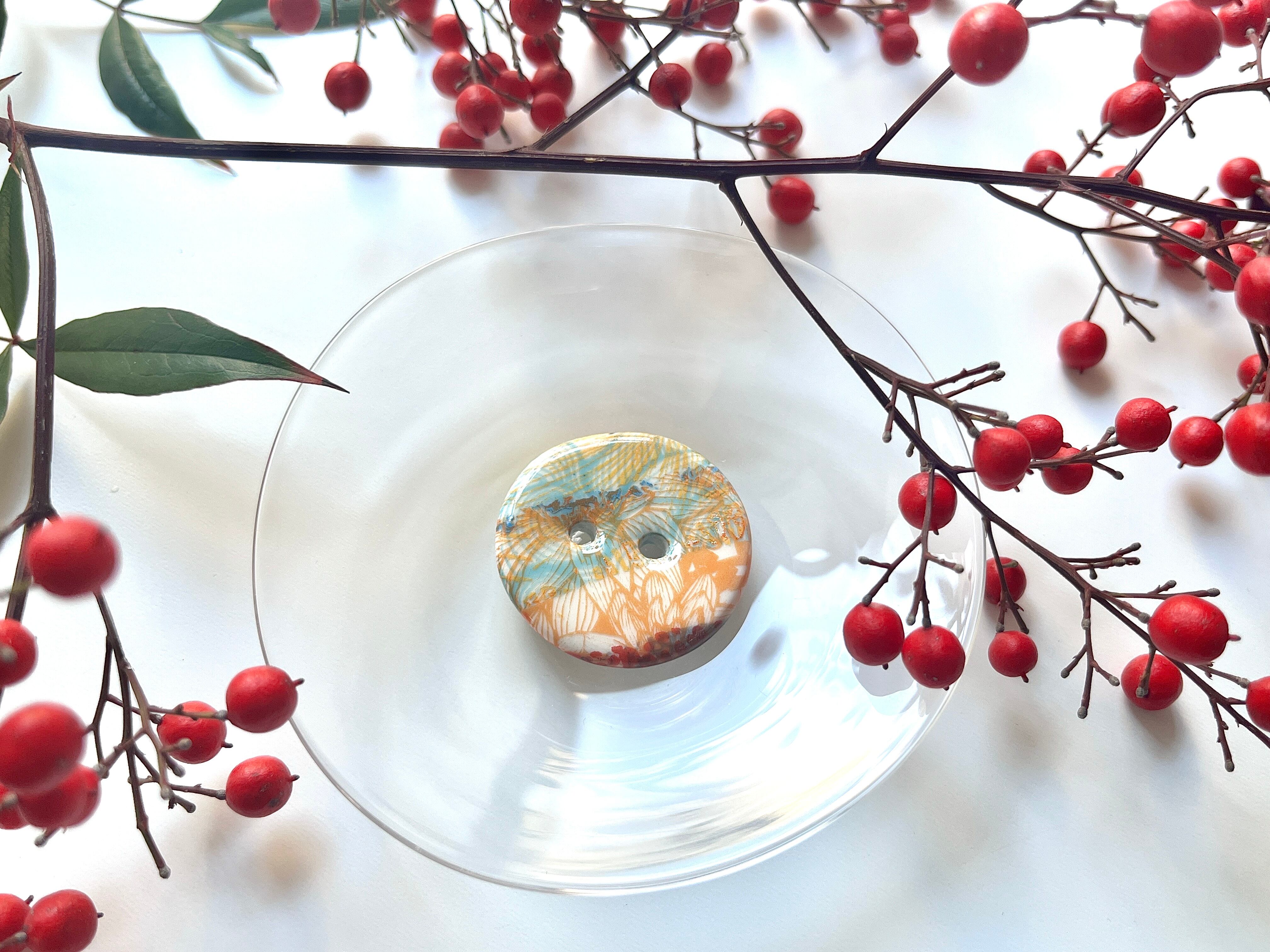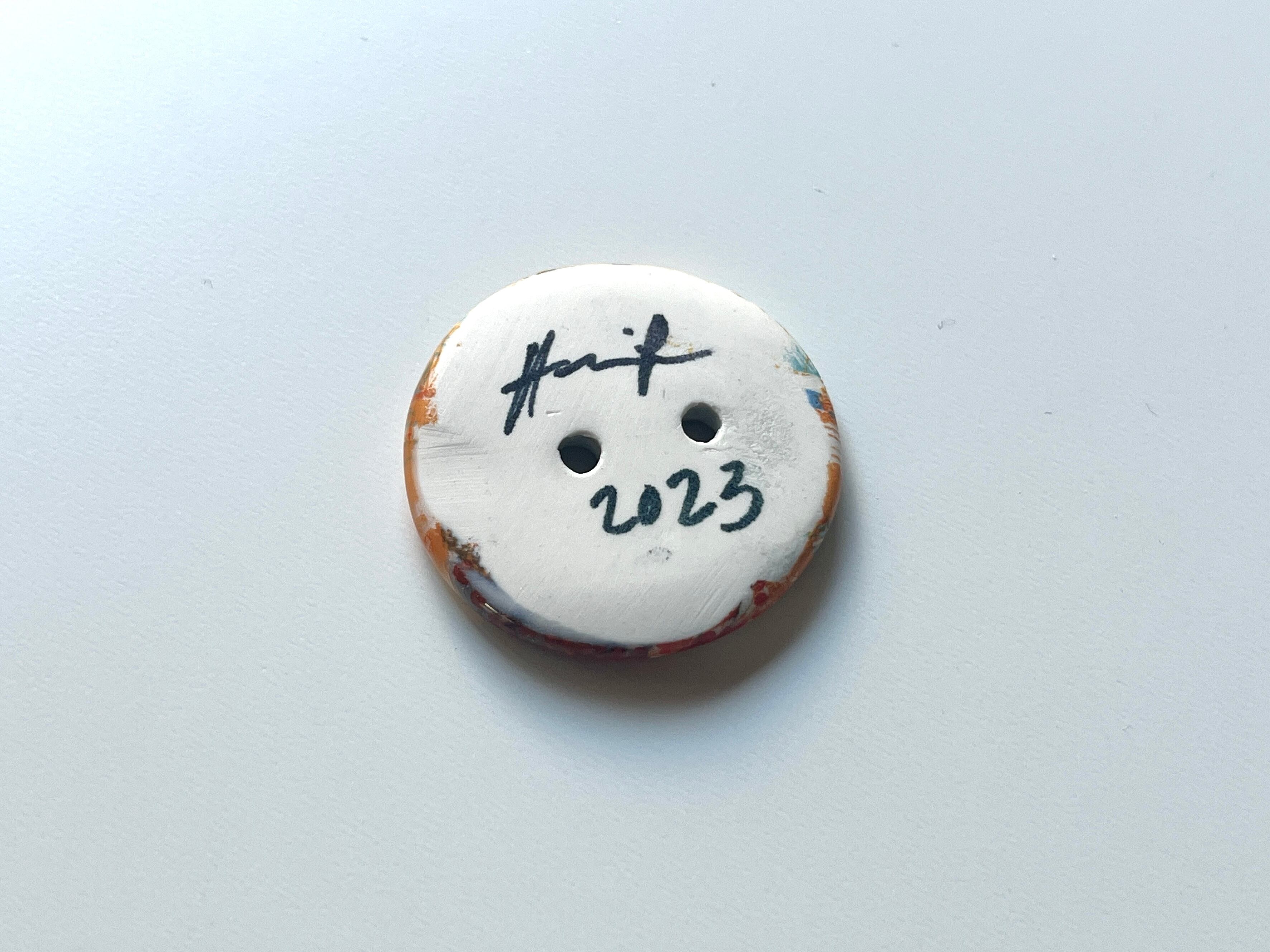 手仕事で仕上げた、ボタン型の小さなアートピースです。