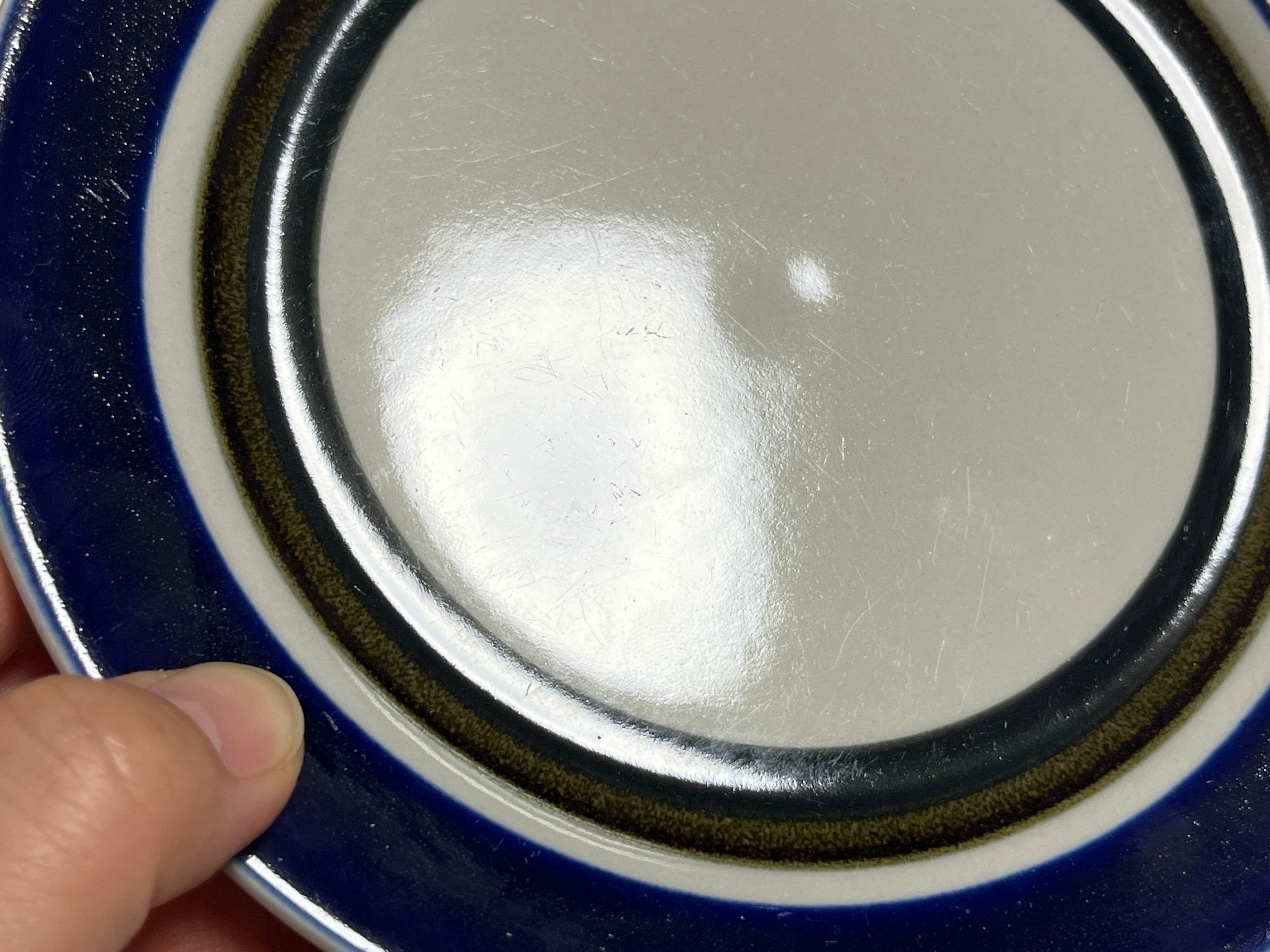 製造時のものですが釉薬ムラや微細な色飛び、黒点、釉薬のピンホール等は特筆しない場合でも大半の個体に存在します。手色彩によるARABIA製品の特性としてご理解ください。
