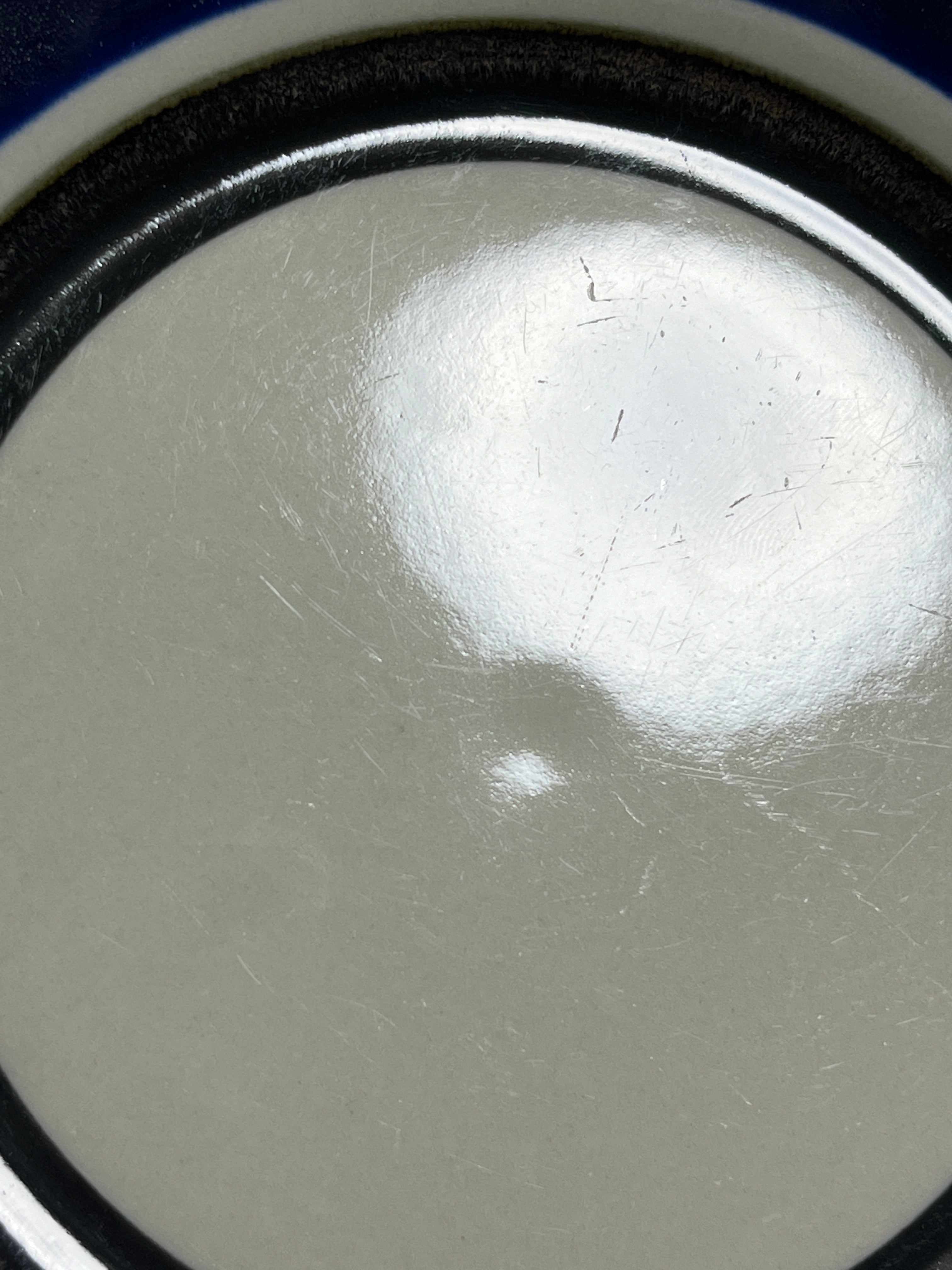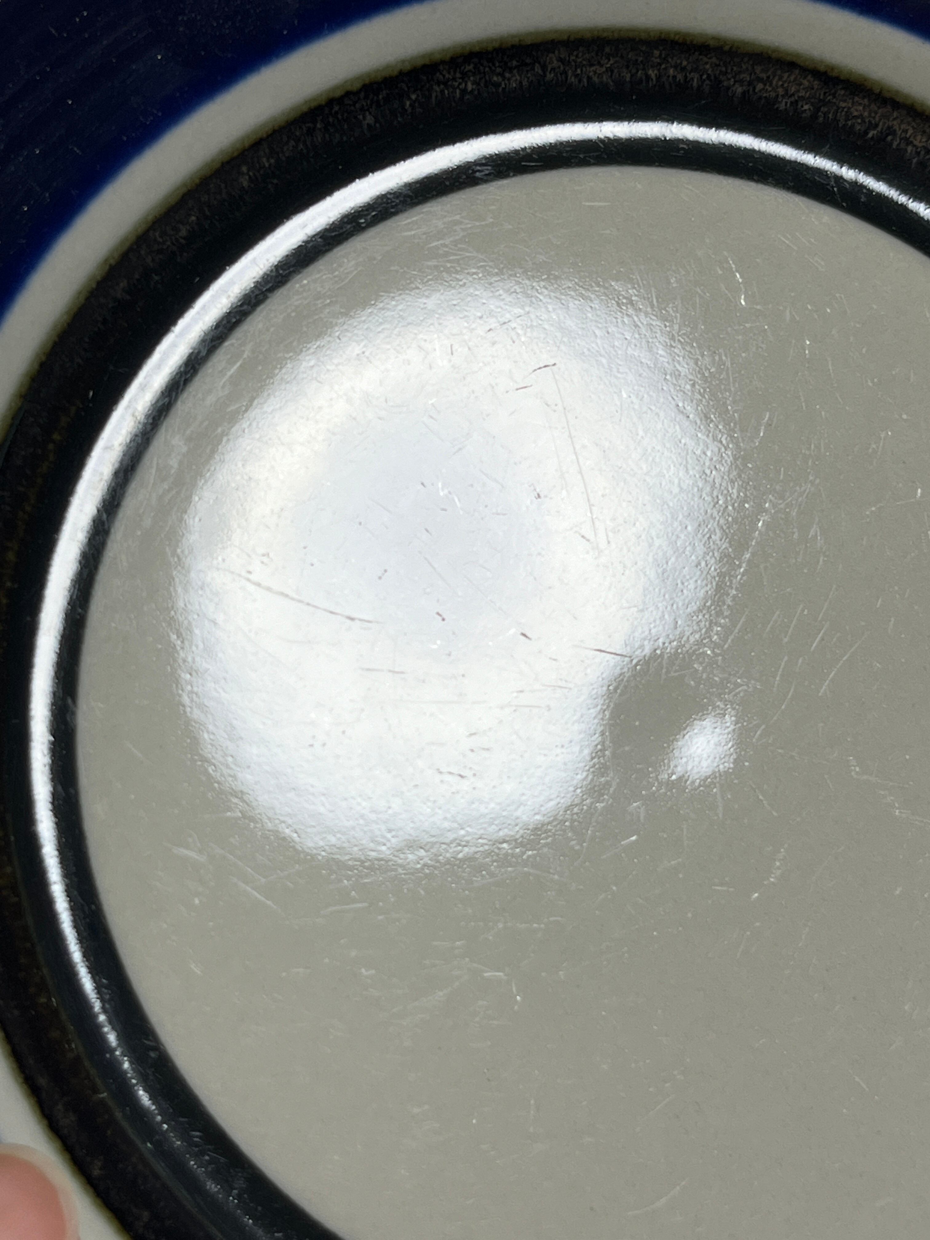 製造時のものですが釉薬ムラや微細な色飛び、黒点、釉薬のピンホール等は特筆しない場合でも大半の個体に存在します。手色彩によるARABIA製品の特性としてご理解ください。
