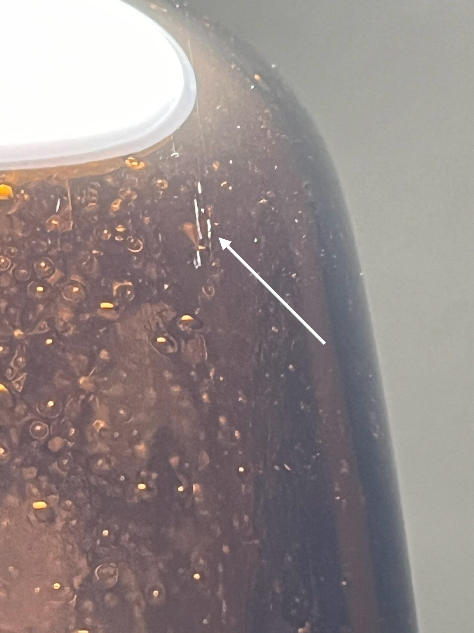 製造時のものとして、取っ手を取り付けるために器具で押さえた跡にざらつきがあります。また多少気泡の表面化がありますがこの製品の特性としてご理解ください。