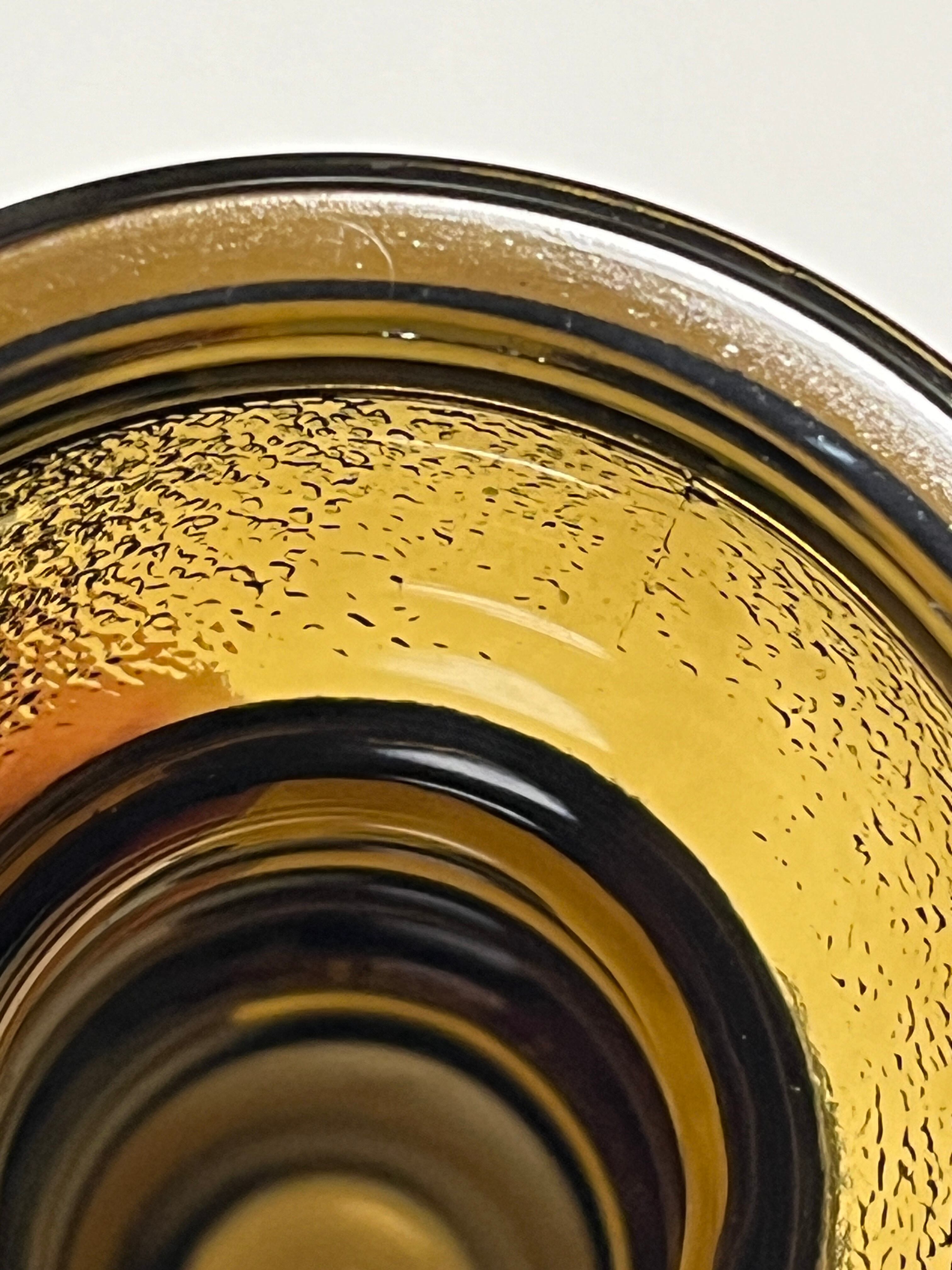 製造段階からのものとして、下記側の口の内側に微細なガラスのバリがあります。また微細な形成不良や気泡、異物の混入その他ガラスの型による筋や、僅かなガラスのシワなどはこのアイテムに必ずみられる特性としてご理解ください。