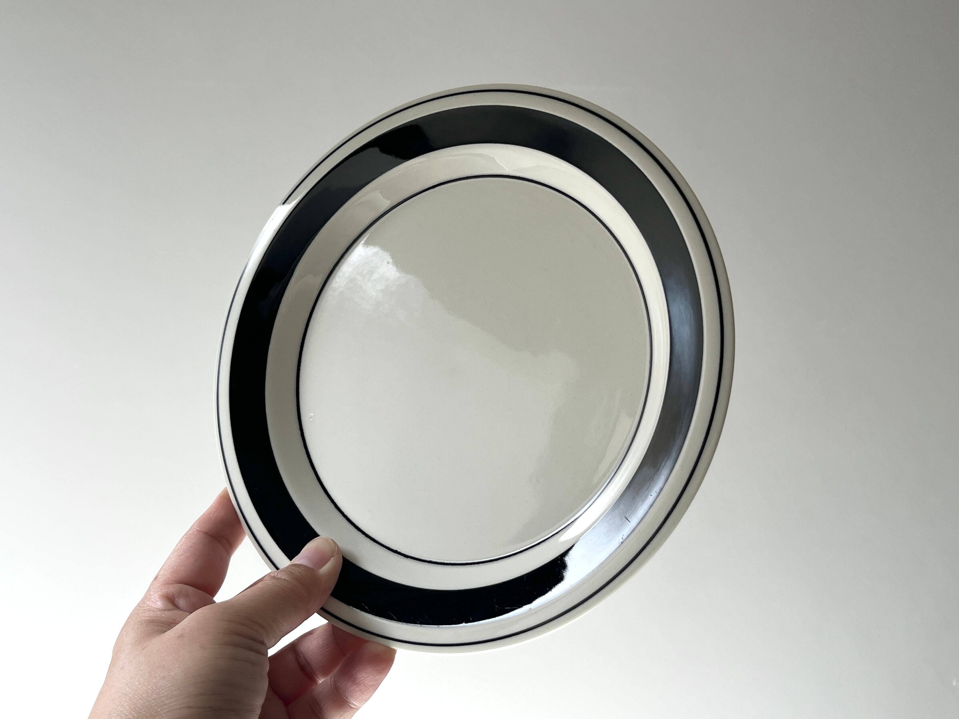 プレート面の縁とリムに、漆黒のラインを大小あしらったシンプルなデザインは