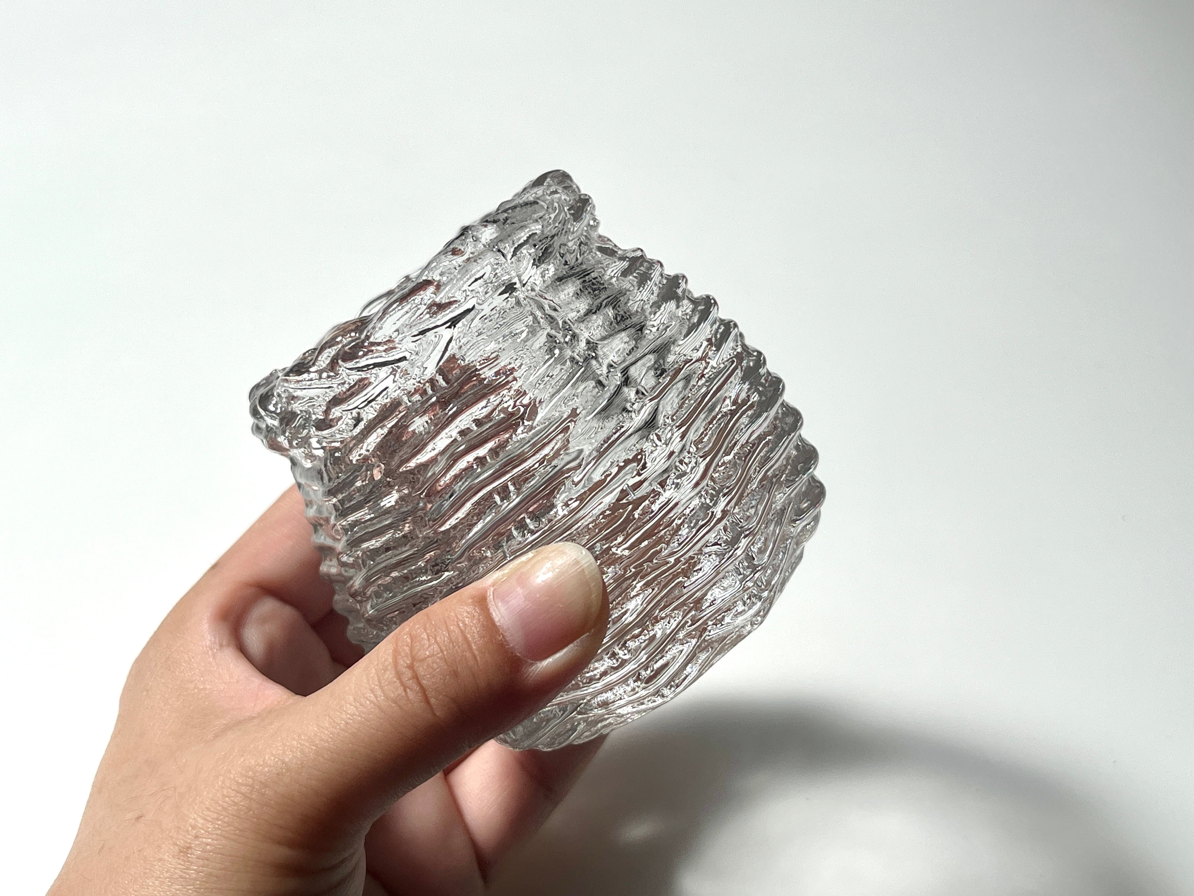背の高いバスケットを、ガラスで表現したユニークな形状をしていて