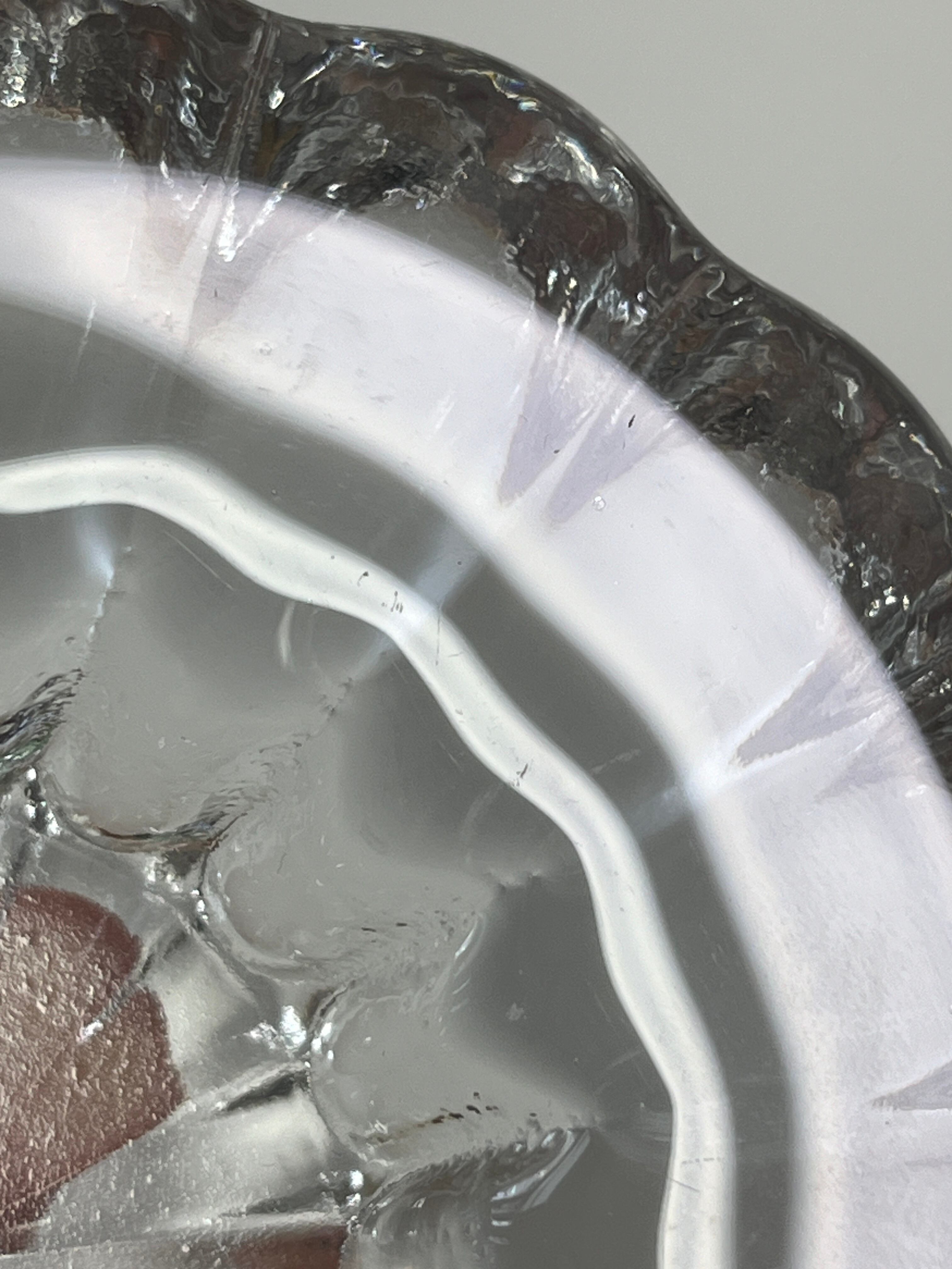 表面に極薄い擦れと極微細な気泡の突出がありますが、光にかざしてかなりしっかりと見なければ確認できない程度のものです。その気になるような傷や汚れは見当たらず、大変きれいなコンディションです。
